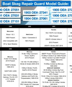 2. Diseñado para Motores Específicos. El Protector de Skeg se adapta a motores Yamaha 150-175HP 2/4 Tiempos 1984-Presente, 200HP 2 Tiempos HPDI y VMAX HPDI 2000-2012, 200HP 4 Tiempos 2.8L I-4 2012-Presente, 300HP 4 Tiempos 2007-2009, 350HP 4 Tiempos 2007-Presente, Modelos Sterndrive I/O 1989-1993. Número de Modelo: 1902. Reemplaza el Número OE: 27151.
