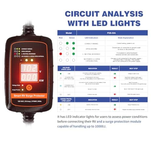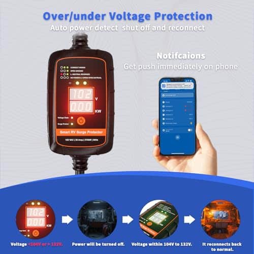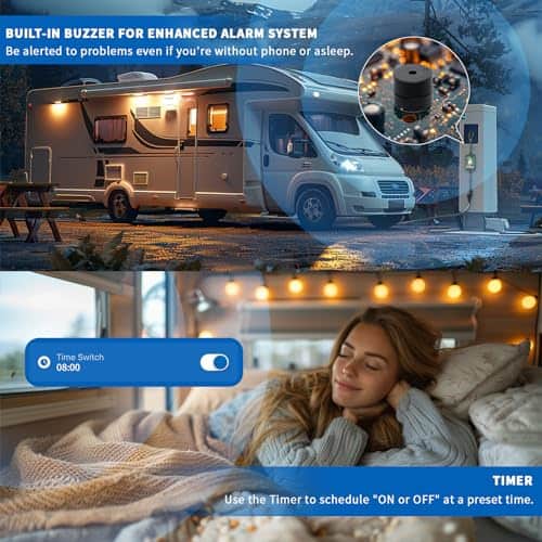 1. Monitoreo de Energía y Programación Mantén un ojo en el consumo de energía de tu RV con el medidor de KWH integrado. Planifica tu consumo de energía eficientemente, ya que este preciso medidor de electricidad de kilovatios-hora acumula datos durante 5 años en tiempo real. Además, la función de temporizador te ayuda a maximizar la eficiencia energética. 2. Conectividad Bluetooth Perfecta La P2 Smart se integra perfectamente con la tecnología Bluetooth de vanguardia, lo que te permite gestionar convenientemente el sistema eléctrico de tu RV desde tu teléfono inteligente o tableta. Monitorea el voltaje, la corriente, la potencia y el consumo de energía en tiempo real a través de una aplicación dedicada y controla los interruptores de forma remota. Con datos precisos de monitoreo de energía al alcance de tu mano, tomar decisiones informadas es sencillo. 3. Protección Avanzada de Voltaje Equipado con control IC inteligente, el EPO P2 Smart garantiza protección contra escenarios de sobrevoltaje y subvoltaje. P2S monitorea el voltaje 3 veces por segundo constantemente, el suministro de energía se cortará en caso de cualquier voltaje anormal. Una vez que el voltaje vuelva a la normalidad, iniciará una cuenta regresiva de 10 segundos y restaurará automáticamente la conexión de energía. 4. Protección Ambiental Mejorada El protector de sobretensión P2S Bluetooth smart para RV de 30 amperios ofrece protección integral. Con un analizador de circuitos para detectar problemas de cableado y un módulo de protección contra sobretensiones con una capacidad de 10000J, está construido con materiales retardantes de llama para resistir condiciones exteriores, incluyendo viento, lluvia y temperaturas extremas, garantizando protección térmica para la electrónica de tu RV. 5. Garantía de 12 meses y Soporte Integral Disfruta de la tranquilidad con actualizaciones de firmware OTA, certificación UL, soporte experto y políticas generosas que incluyen una devolución de 30 días y un servicio de reemplazo de 36 meses. 6. Zumbador Incorporado Mantente alerta ante cualquier anomalía de energía con el zumbador incorporado. P2 Smart mejora el sistema de alarma de tu RV, proporcionando advertencias audibles en caso de picos de voltaje o caídas. 7. Módulo de Protección contra Sobretensiones Reemplazable El módulo de protección contra sobretensiones en P2 Smart es reemplazable de auto servicio. Esta función conveniente elimina la necesidad de asistencia profesional, ahorrándote tiempo y dinero. 8. Diseño Amigable para el Usuario Diseñado pensando en la comodidad del usuario, el protector de sobretensión Smart P2 para RV cuenta con un diseño ergonómico de mango de energía para una inserción y extracción seguras y sin esfuerzo. La certificación UL garantiza su seguridad y confiabilidad, brindando tranquilidad a los entusiastas de RV. 9. Display de Voltaje en Tiempo Real El P2 Smart cuenta con una pantalla LED clara para lecturas instantáneas de voltaje. Para P2S-50 amperios, la pantalla, proporciona únicamente información de voltaje del circuito L1, mientras que los detalles completos de voltaje (L1+L2) se pueden ver a través de la interfaz de la aplicación. Mantente informado sobre el consumo de energía y mantén fácilmente una gestión óptima de la energía.