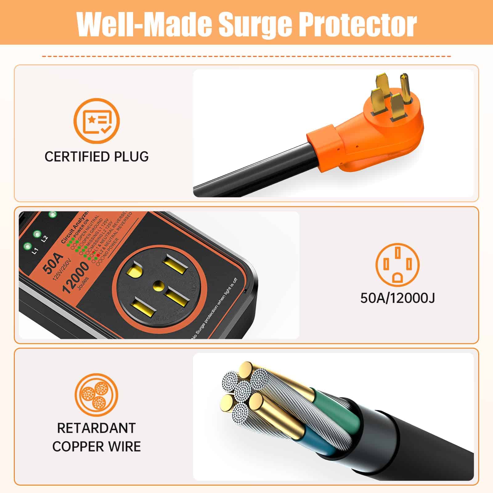 Protector de sobretensión para RV de 50 amperios -Naranja