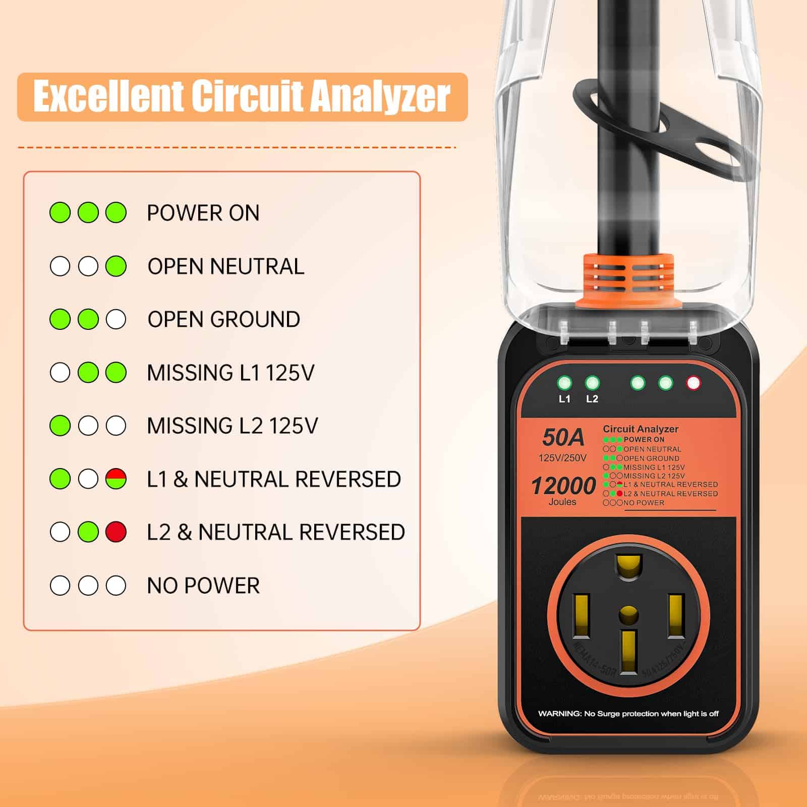 Este protector de sobretensión para RV de 50 amperios impermeable y actualizado es una excelente opción para proteger sus equipos y electrodomésticos de alta potencia mientras viaja en su camper o remolque de viaje. Con una protección de 12,000 J, puede estar seguro de que sus sistemas estarán protegidos de picos de corriente y sobretensiones peligrosas. Certificado de seguridad y fácil de usar, proporciona una seguridad y confiabilidad excepcionales en todo momento. El diseño plug and play hace que sea muy sencillo de instalar y comenzar a utilizar de inmediato. Además, cuenta con una protección IP68 que lo hace resistente al agua y a las condiciones climáticas extremas, lo que lo convierte en una opción ideal para viajes al aire libre. Con un servicio al cliente disponible las 24 horas, puede estar seguro de que sus necesidades serán atendidas en todo momento. Proteja su equipo y disfrute de su viaje con este protector de sobretensión para RV de 50 amperios.