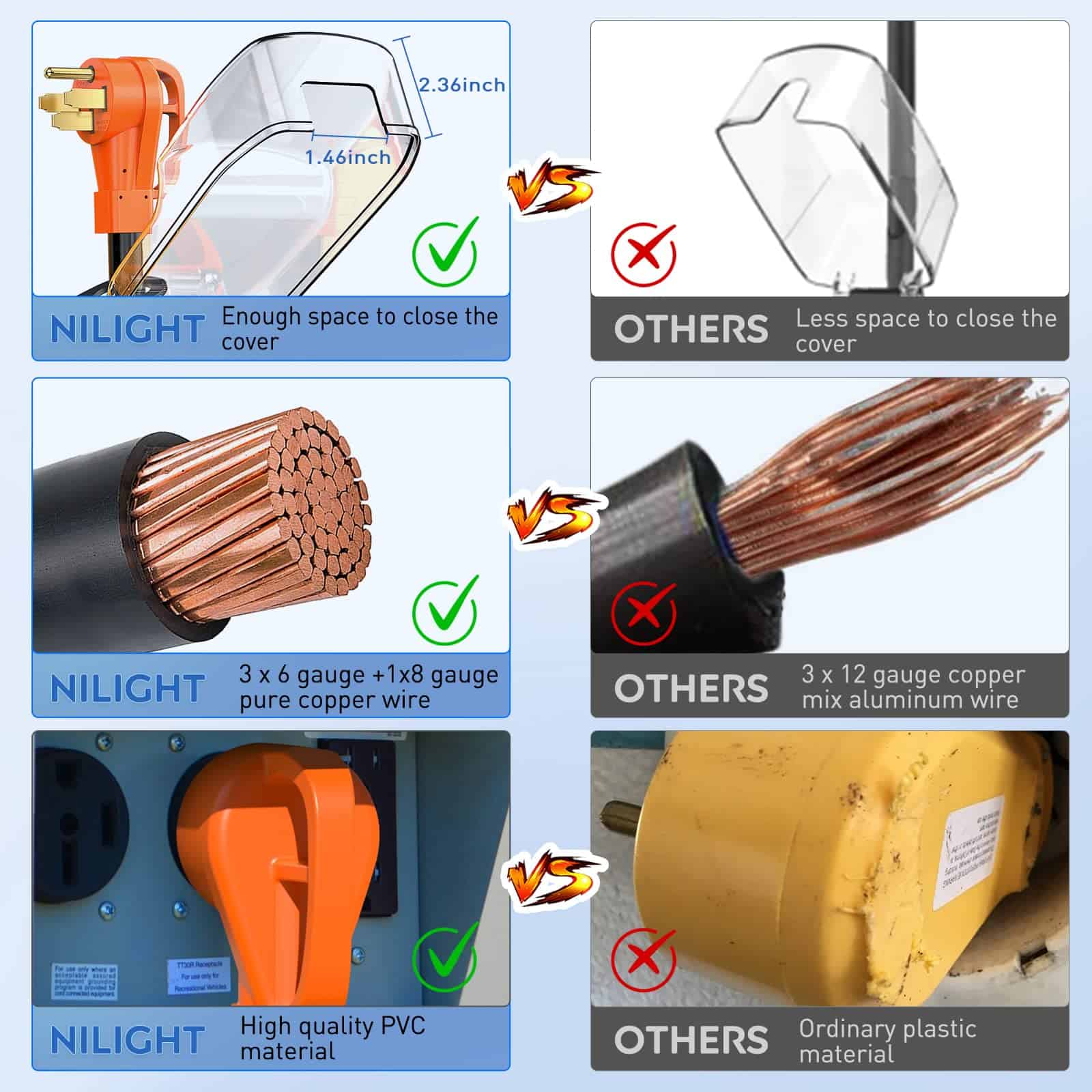 5. Certificado ETL: Nuestro protector de sobretensión para RV ha sido probado en un laboratorio ETL y se encontró que cumple con todas las Normas de Seguridad aplicables publicadas por los NRTL relevantes. La certificación ETL sigue los mismos estándares de seguridad que Underwriter Laboratories o UL. 6. El paquete incluye: Protector de Sobretensión para RV de 50 amperios y manual de instrucciones. Garantía de 12 meses de Nilight.