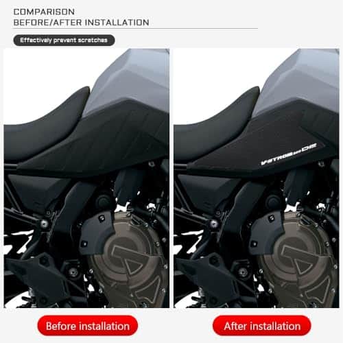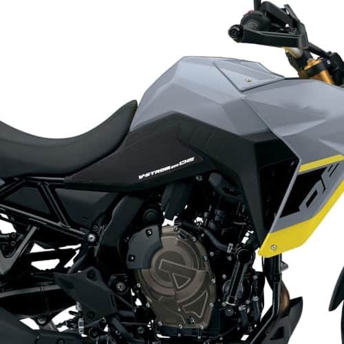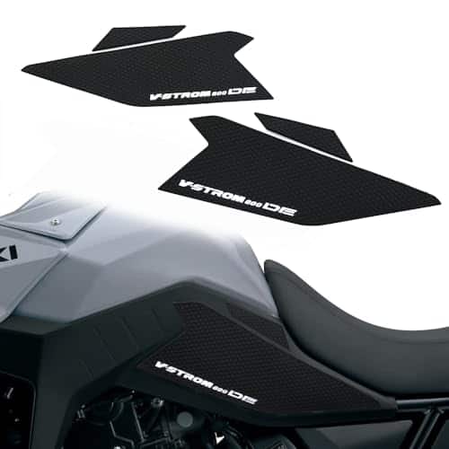 KATIE DEVI Diseño de grano hexagonal Tank Pads para V-STROM 800DE Los Snake Skin Tank Pads son el producto estrella de la línea KATIE DEVI. El diseño de grano hexagonal Tank Pad cuenta con el patrón más agresivo disponible, que brinda un agarre incomparable y un control mejorado. Sentirá la diferencia de inmediato, ya que los pads le permiten disminuir la presión en sus muñecas, codos y hombros, mejorando la relación entre usted y su máquina. ¡Perfecto para cualquier piloto que vaya a la pista! La posición corporal y el control del peso son técnicas esenciales para todos los estilos de conducción, no solo para la conducción agresiva. Al sujetar el tanque con las piernas, mejorará el control general de su movimiento corporal, posición y postura. Características: Forma específica de la moto Adhesivo especial que permite que los pad pads se puedan quitar y reposicionar si es necesario Elimina el deslizamiento Mejora el estilo de conducción No daña pantalones de cuero o textiles Incluye pad de tanque central Nota: Tenga cuidado al quitar el papel respaldo del adhesivo para no eliminarlo del Pad del tanque. La imagen instalada es solo de referencia de forma y tamaño.