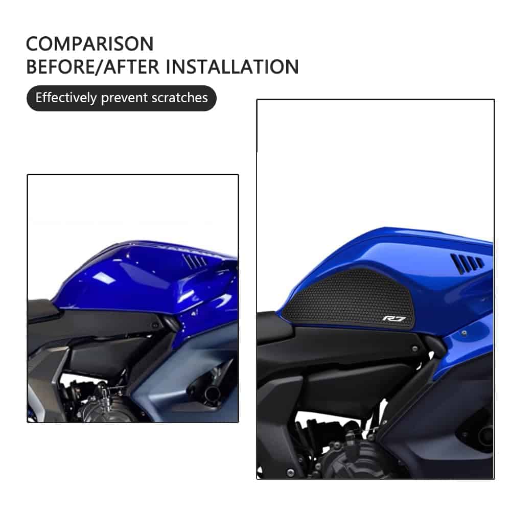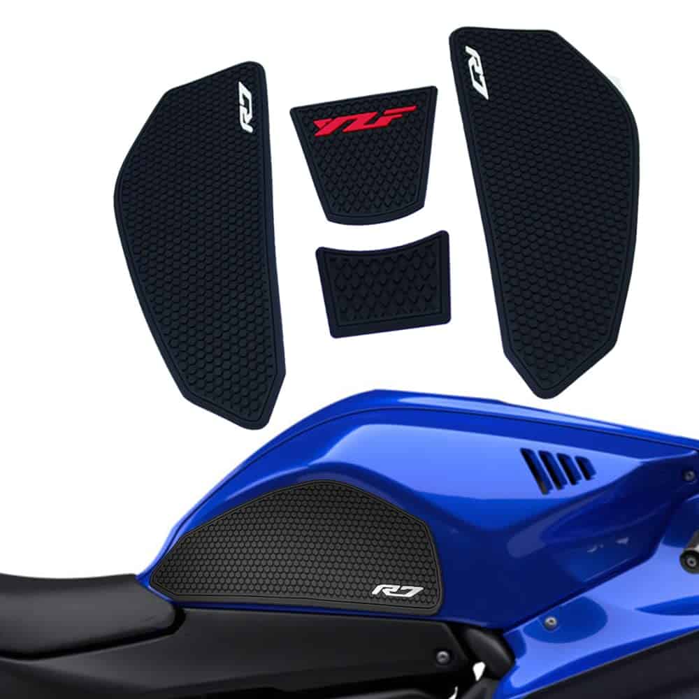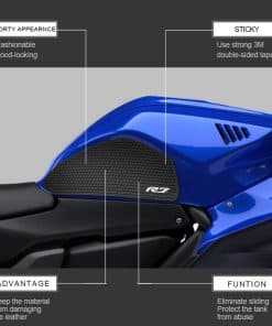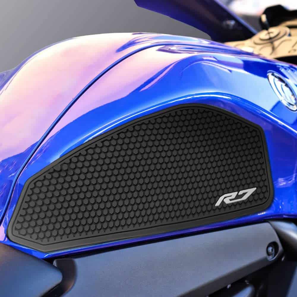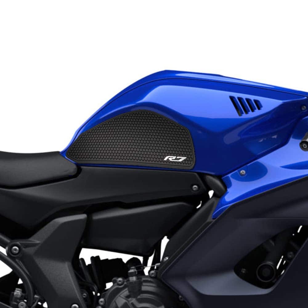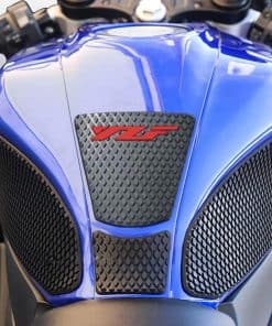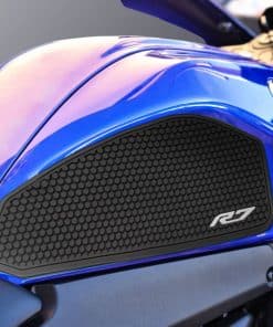 Protector de tracción de tanque de motocicleta diseñado para YZF R7 para mejorar el control y la comodidad durante la conducción. Fabricado con material de alta calidad que proporciona un agarre antideslizante para mantener la estabilidad. El juego incluye un par de protectores en color negro con un ajuste perfecto para YZFR7 del año 2022, 2021 y 2023.