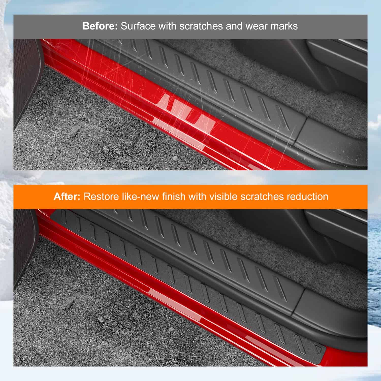 1. Perfectamente Diseñado: El protector es compatible con el protector de umbral de puerta de Chevy Colorado GMC Canyon 2023, 2024, 2025. Incluye 2 protectores de umbral de puerta delanteros y 2 protectores de umbral de puerta traseros para una protección completa. Por favor, verifique el modelo de su coche y confirme la posición cuidadosamente antes de comprar para evitar errores de coincidencia.