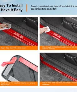 4. Instalación Sencilla: El proceso de instalación de nuestro reemplazo de protección de umbral de puerta para la entrada de Chevy Colorado 2023-2025 es muy fácil. Por favor, limpie la posición de instalación antes de la instalación. Solo necesita colocar el protector de umbral de puerta en el lugar correcto. Tiene autoadhesivo en la parte posterior. Todo el proceso dura solo unos minutos. Si desea una adhesión más fuerte, puede calentar la cinta de doble cara con un secador de pelo para que la adhesión sea más ajustada. Por favor, no toque agua después de pegarla dentro de las 48 horas.