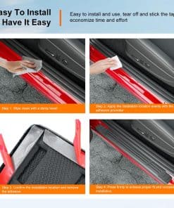 El protector de umbrales de puerta de powoq es una excelente adición para su Palisade 2020-2025. Diseñado específicamente para ofrecer una protección completa a los umbrales de las puertas de su coche, este kit incluye 2 protectores de umbral de puerta delanteros y 2 protectores de umbral de puerta traseros. Hechos de material de alta calidad TPE, estos protectores son resistentes a los arañazos, flexibles y no tienen mal olor. El diseño cóncavo y convexo proporciona un agarre antideslizante y suavidad adicional. Además de proteger los umbrales de las puertas de colisiones y arañazos, el aspecto negro mate añade un toque de estilo personal al interior de su coche. La instalación es rápida y sencilla, con adhesivo en la parte posterior de los protectores. Asegúrese de limpiar la posición de instalación antes de colocarlos en su lugar. Para garantizar una adhesión óptima, siga los consejos de instalación incluidos en las instrucciones. Con el protector de umbrales de puerta de powoq, puede viajar con tranquilidad y disfrutar de su Palisade al máximo.