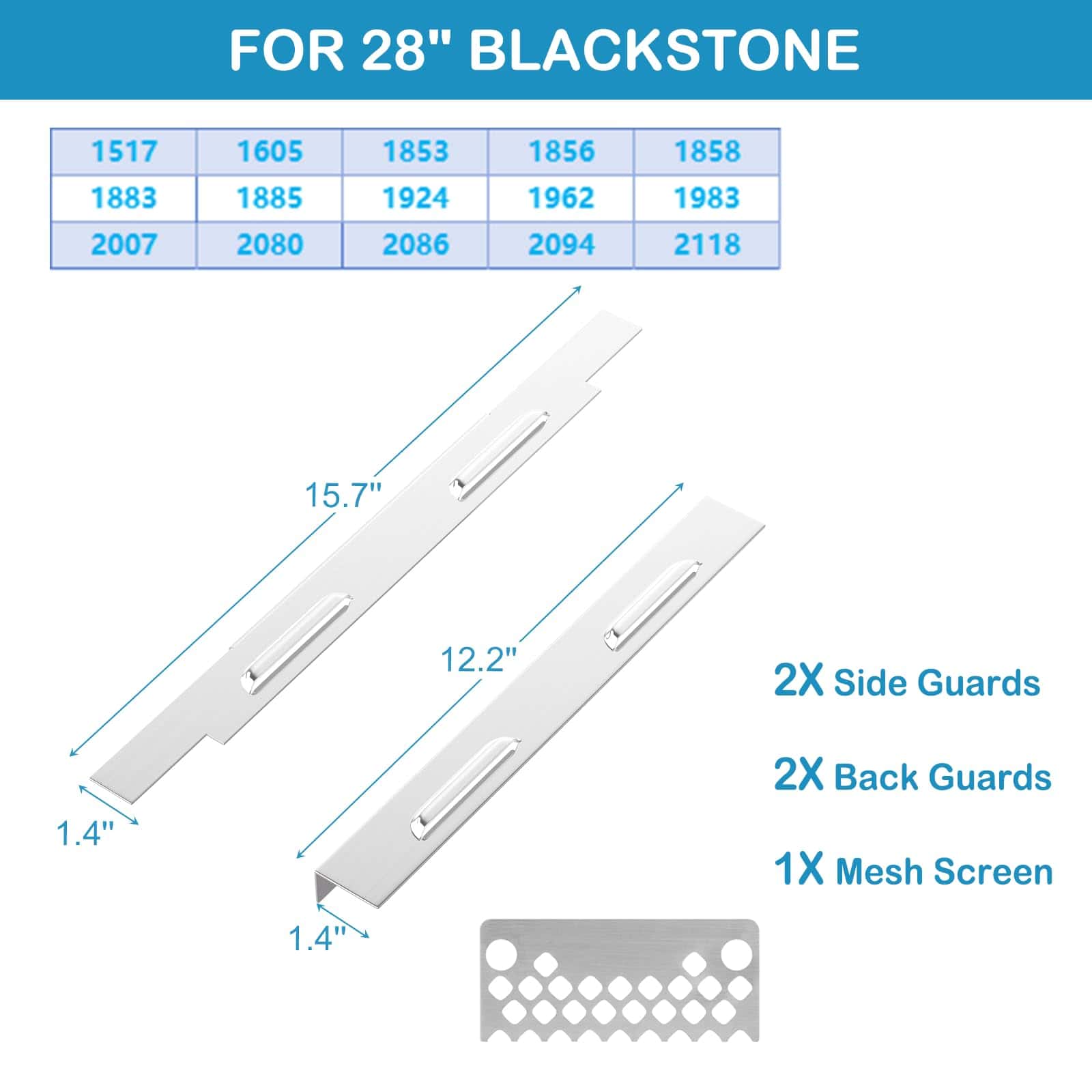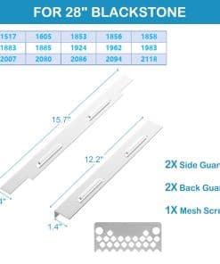 1. Perfecto para BlackStone 28″ griddle. Los protectores de viento son compatibles con los modelos de Blackstone 28 pulgadas: 1605, 1517, 1853, 1858, 1856, 1883, 1885, 1962, 1983, 1924, 2007, 2086, 2118, 2080, 2094 y otras marcas adecuadas para parrillas. No incluye la serie culinaria y la serie e. No más preocupaciones de que no sea compatible con capucha, mesa auxiliar y bandeja de grasa trasera para la parrilla Blackstone.