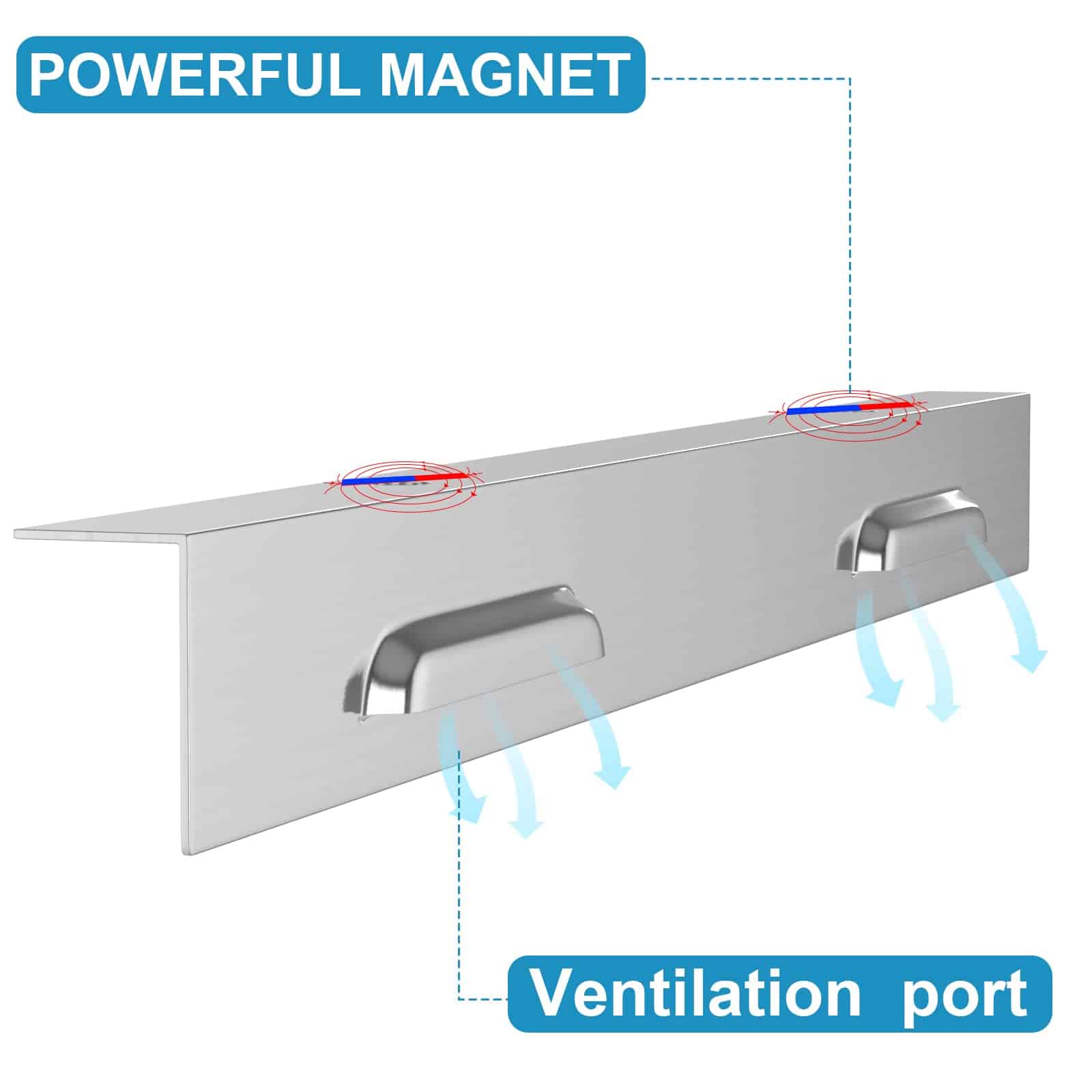 Protector de viento de alta calidad para la parrilla Blackstone, hecho de acero de alta calidad con recubrimiento en polvo, no se oxida fácilmente y es más duradero. Tendrán una larga vida útil y fácil de limpiar. Los protectores de viento están diseñados para cubrir las brechas entre la parte superior de la parrilla y los quemadores, brindando a sus deliciosas comidas la protección necesaria contra el viento y los insectos. Cada protector de viento para la parrilla Blackstone viene incorporado con dos imanes fuertes que se pueden adherir de forma segura al borde inferior de la parrilla. El protector de viento para accesorios Blackstone de 28 pulgadas resiste el viento fuerte, reuniendo el calor en la parrilla y reduciendo los tiempos de calentamiento. La pantalla de malla de alimentos evita que la deliciosa comida caiga en la bandeja de grasa. Deje que su cocina con viento se convierta en una brisa. La pantalla de viento magnético de acero inoxidable se puede instalar en segundos. Preste atención: asegúrese de que los puntos magnéticos se adhieran a su parrilla. Los imanes para los protectores de viento Blackstone de 28″ se aseguran con tornillos, por lo que no tendrá que preocuparse por que se caiga durante el uso. Si hay algún problema con los deflectores de parrilla Blackstone, no dude en contactarnos a través de Preguntas y Respuestas de Clientes o por correo electrónico. Le ayudaremos a resolver el problema dentro de las 24 horas y le daremos una respuesta satisfactoria.