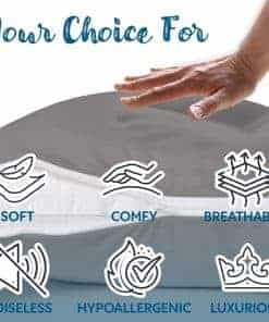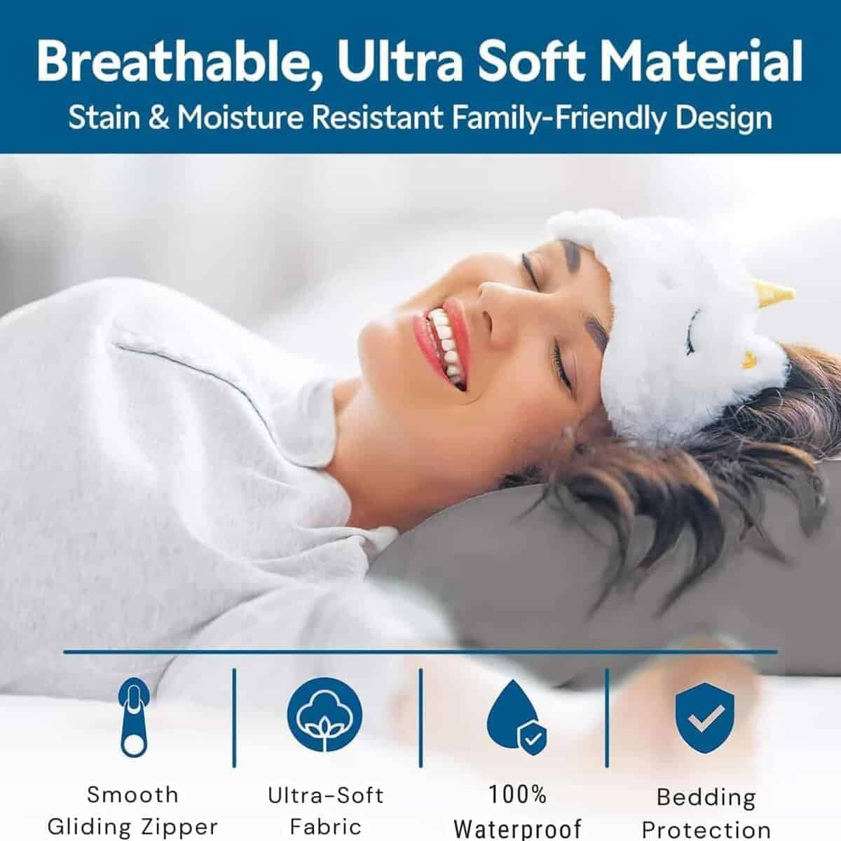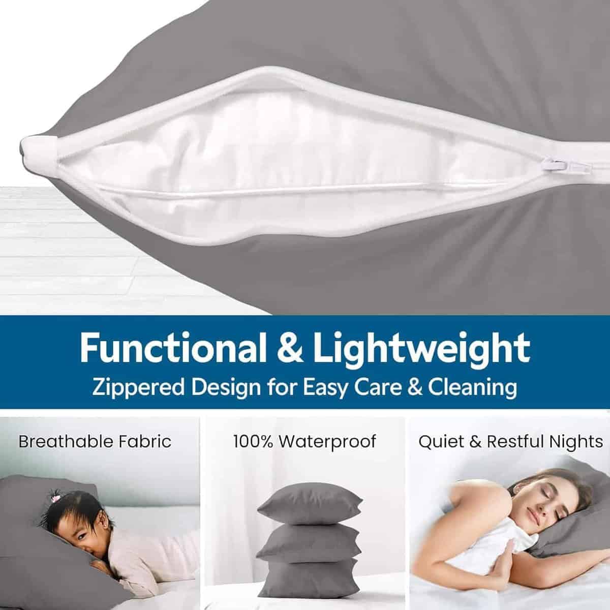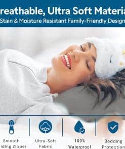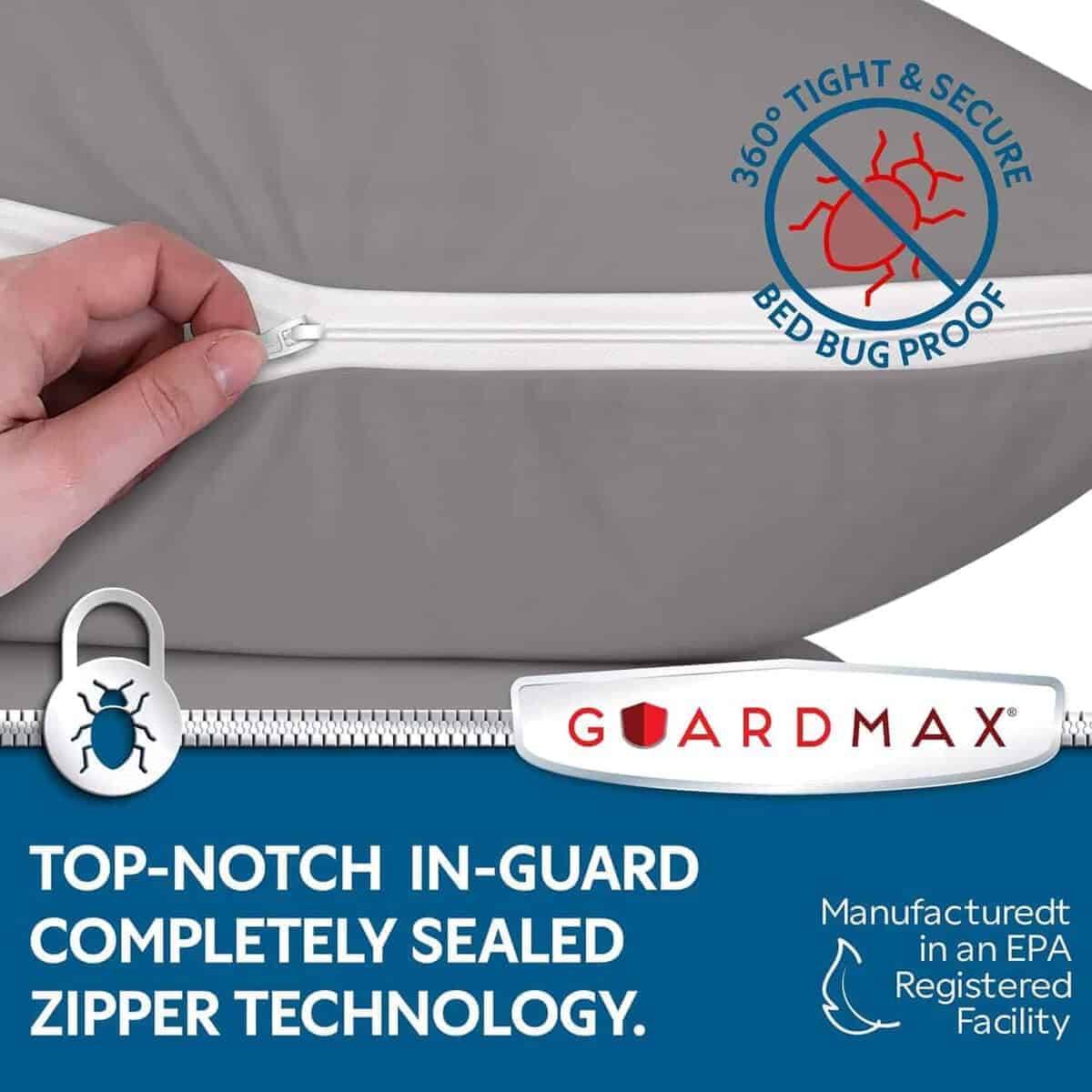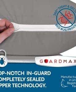Los protectores de almohadas Guardmax son la manera perfecta de proteger sus almohadas de la transpiración, babeo, derrames de líquidos, manchas, chinches de cama, ácaros del polvo y otros alérgenos. El protector de almohada Guardmax está hecho de una tela 100% impermeable que también es hipoalergénica y a prueba de chinches de cama. El protector de almohada tiene un diseño patentado con cremallera que asegura que no escape nada malvado una vez que coloque la funda de almohada y la cierre con cremallera. El protector de almohada también es suave y cómodo, y es resistente a las arrugas y fácil de lavar. El protector de almohadas impermeable Guardmax proporciona una protección confiable contra la transpiración, babeo, derrames de líquidos y manchas. Con nuestra avanzada barrera impermeable, su almohada permanece limpia, fresca y libre de cualquier humedad no deseada.