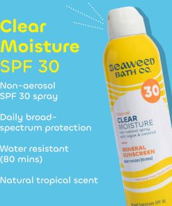 Clear Moisture SPF 30 es un protector solar mineral en spray que ofrece una protección eficaz contra los rayos UVA/UVB. Su fórmula hidratante combina ingredientes como algas y coco para nutrir la piel, mientras que el ácido hialurónico ayuda a mantener la humedad. Además, la fórmula está elaborada de manera consciente, ya que es cruelty free, vegana y libre de parabenos. Este protector solar es perfecto para todo tipo de piel y estilos de vida, y es resistente al agua hasta 80 minutos. Aplicar generosamente antes de la exposición al sol y reaplicar con frecuencia para una protección óptima.