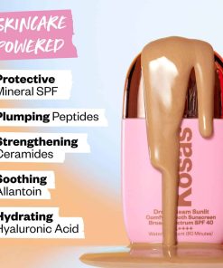 Conoce el protector solar prep para maquillaje más vendido: Kosas DreamBeam Protector Solar Resistente al Agua SPF 40. Nuestro DreamBeam SPF 40 PA++++ ofrece una protección ligera que se mezcla sin esfuerzo en tu piel para una aplicación suave de maquillaje. Formulado con ceramidas y péptidos, este protector solar mineral no solo protege tu piel con protección SPF 40, sino que también rellena, suaviza, tonifica e hidrata visiblemente. Ofrece un tono dorado suave para un brillo cálido de vacaciones y es resistente al agua durante 80 minutos. La fórmula ligera nunca es grasosa ni pesada. Se funde en tu piel, dejándola suave, flexible e hidratada. Entendemos la importancia de un cuidado de la piel suave y limpio. Es por eso que DreamBeam Soleado no tiene fragancias, siliconas y está libre de aceite mineral, parabenos y ftalatos. Ha sido testado dermatológicamente y es seguro para pieles sensibles, asegurando una experiencia cómoda para todos. DreamBeam no es solo otro protector solar, es un elemento esencial para el cuidado de la piel que prepara tu piel para el maquillaje, proporcionando una base suave para tu aspecto. Permite que SPF se absorba y fije completamente durante 3-5 minutos antes de aplicar maquillaje. Clínicamente testado para mejorar la hidratación, la firmeza, la elasticidad, la claridad y la calidad general de la piel, puedes confiar en su eficacia. Ya sea que lo uses solo o como base para el maquillaje, aplicar DreamBeam Soleado es simple. Solo caliéntalo entre tus manos y aplícalo suavemente sobre tu piel, permitiendo que se absorba completamente antes de maquillarte. Con su fórmula resistente al agua, puedes confiar en que tu piel esté protegida, incluso durante actividades al aire libre.