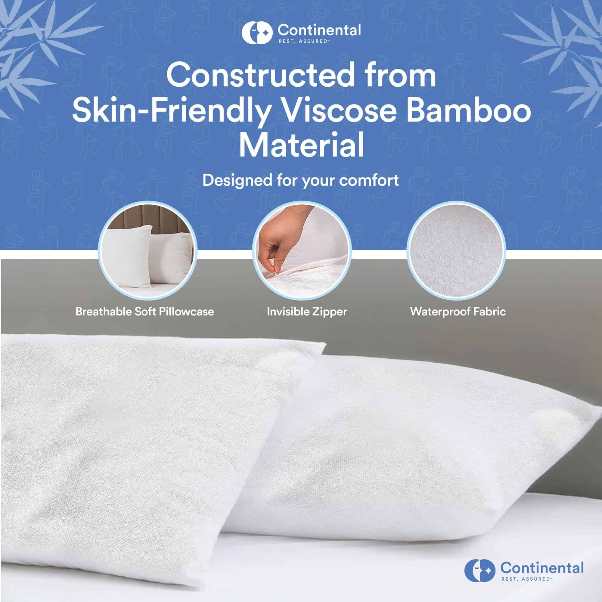 Eleva tu experiencia de sueño a nuevas alturas de confort y lujo con los Protectores de Almohada de Bambú Premium de Continental Bedding. Elaborados con atención meticulosa al detalle y utilizando solo los mejores materiales, nuestros protectores de almohada están diseñados para brindarte la combinación definitiva de confort indulgente y protección superior para tus almohadas. Confort Indulgente, Protección Premium Envuelve tus almohadas en el abrazo suntuoso de la tela de bambú. Renombrada por su textura suave y sensación de lujo, la tela de bambú ofrece un nivel de confort sin igual que te dejará sintiéndote mimado cada vez que apoyes la cabeza para descansar. No solo se siente increíblemente suave contra tu piel, sino que también ofrece una protección excepcional contra manchas, derrames y accidentes, asegurando que tus almohadas se mantengan frescas, limpias y libres de daños noche tras noche. Opciones de Paquete de Valor Elige entre nuestras convenientes opciones de 1 paquete y 2 paquetes para adaptarse a tus necesidades de ropa de cama. Ya sea que estés equipando una sola almohada o un conjunto de dormitorio completo, nuestros paquetes de valor ofrecen flexibilidad y asequibilidad sin comprometer la calidad. Además, con varios paquetes, puedes rotar fácilmente tus protectores de almohada para una frescura y protección continuas. Transforma tu Santuario de Sueño Mejora tu santuario de sueño con los Protectores de Almohada de Bambú Premium de Continental Bedding y experimenta la diferencia que el lujo y la calidad pueden hacer en tu sueño. Con su confort indulgente, protección superior y artesanía impecable, nuestros protectores de almohada seguramente se convertirán en una parte esencial de tu rutina de dormir. ¡Date el lujo del mejor sueño de lujo hoy!