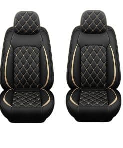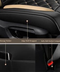 Protege los asientos de tu automóvil con estos protectores de asiento de cuero de alta calidad. Hechos de cuero de poliuretano y rayón suave y durable, son resistentes al desgaste y al agua. Son compatibles con calefacción y ventilación de asientos, cinturones de seguridad, airbags, soporte para vasos y asientos traseros divididos 40/60. Instalación fácil y limpieza sencilla. Disponible en más colores y diseños en nuestra tienda. Haz un regalo pensado a tus seres queridos.