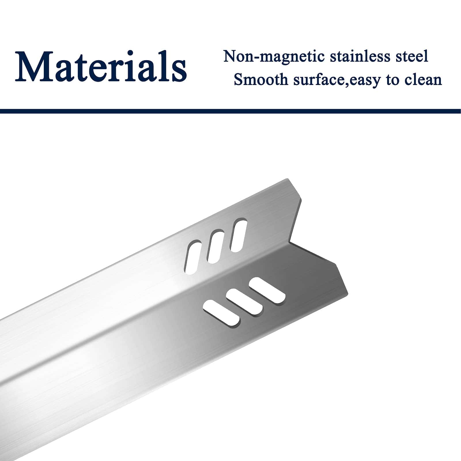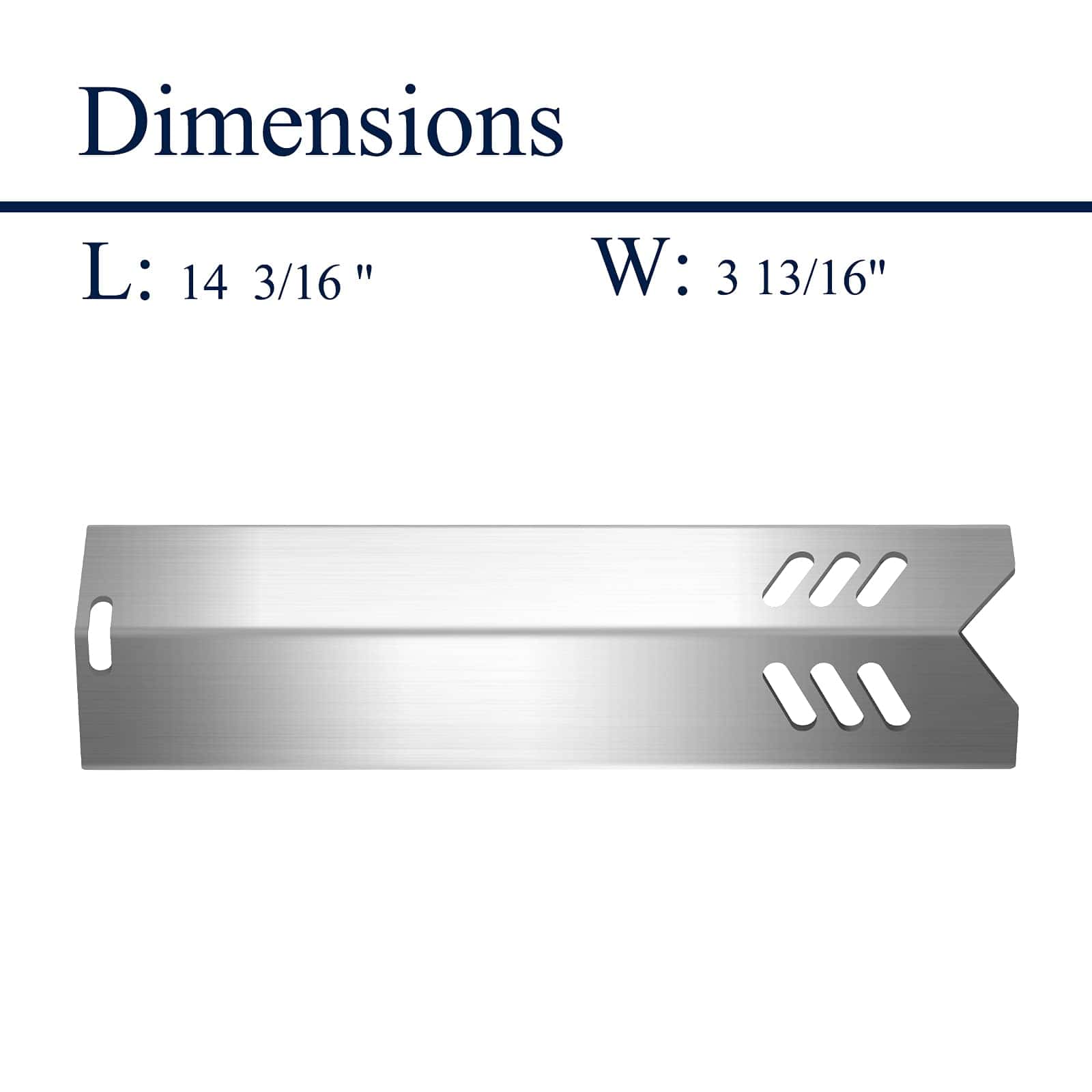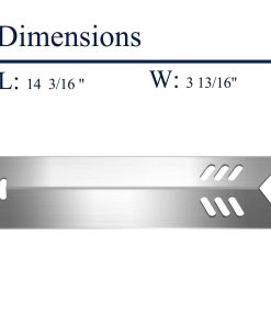 2. Dimensiones y Paquete – Dimensiones: 14 3/16″ x 3 13/16″. Por favor, verifique bien el tamaño y la forma de sus piezas originales antes de ordenar. Paquete: 3 piezas de reemplazo de quemador de parrilla/protectores de placa de calor/tiendas de sabor/barra vaporizadora/cubierta de quemador/protector de llama.