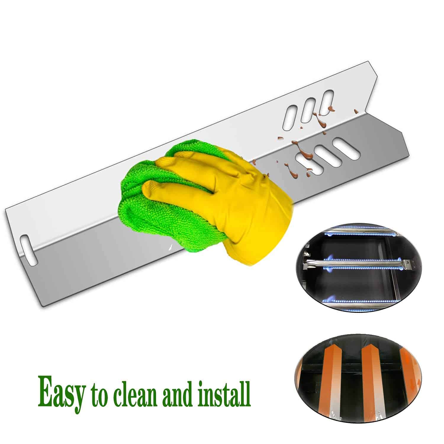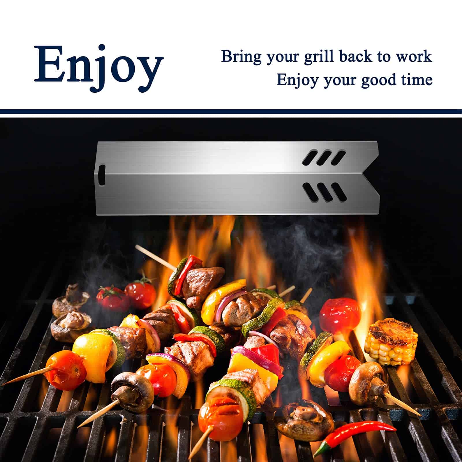 4. Función de la Placa de Calor de la Parrilla – Nuestras piezas de repuesto para parrilla protegen el quemador de residuos de comida, bloqueando el orificio. Atrapan goteos que humean y sisean, agregando un sabor ahumado a la comida.
