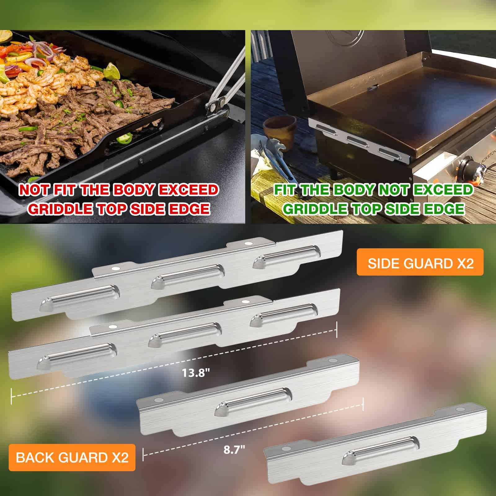 4. INSTALACIÓN RÁPIDA: Gracias a los protectores de viento blackstone con dos imanes, puedes colocar directamente los protectores de viento blackstone en la plancha en segundos, los protectores de viento blackstone con agujeros de ventilación pueden estar hacia arriba o hacia abajo. Y la instalación de los protectores de viento blackstone no interfiere con otros accesorios de plancha blackstone.
