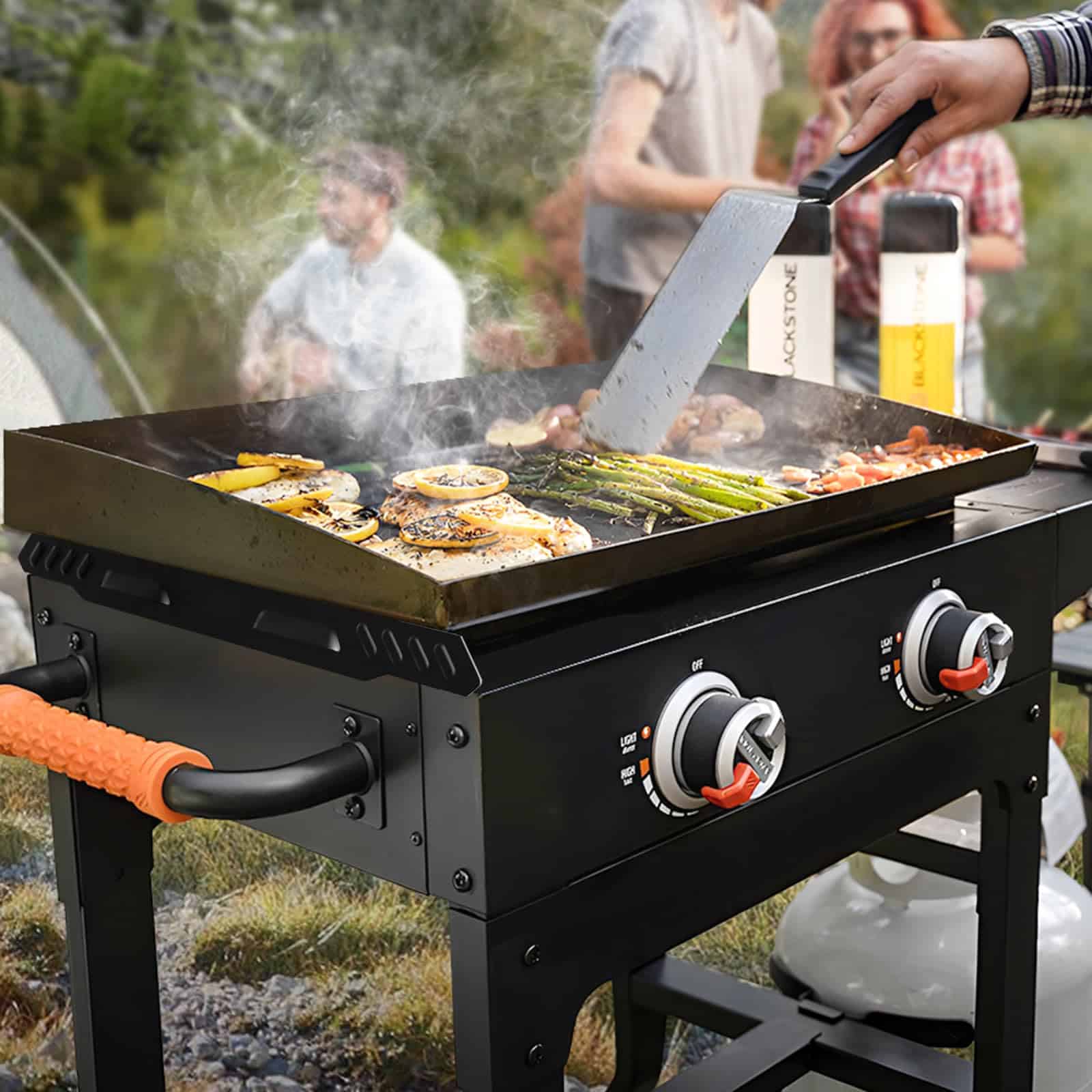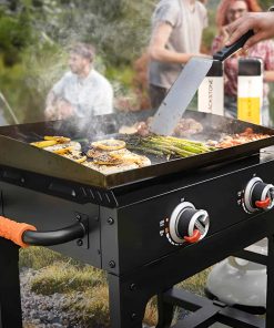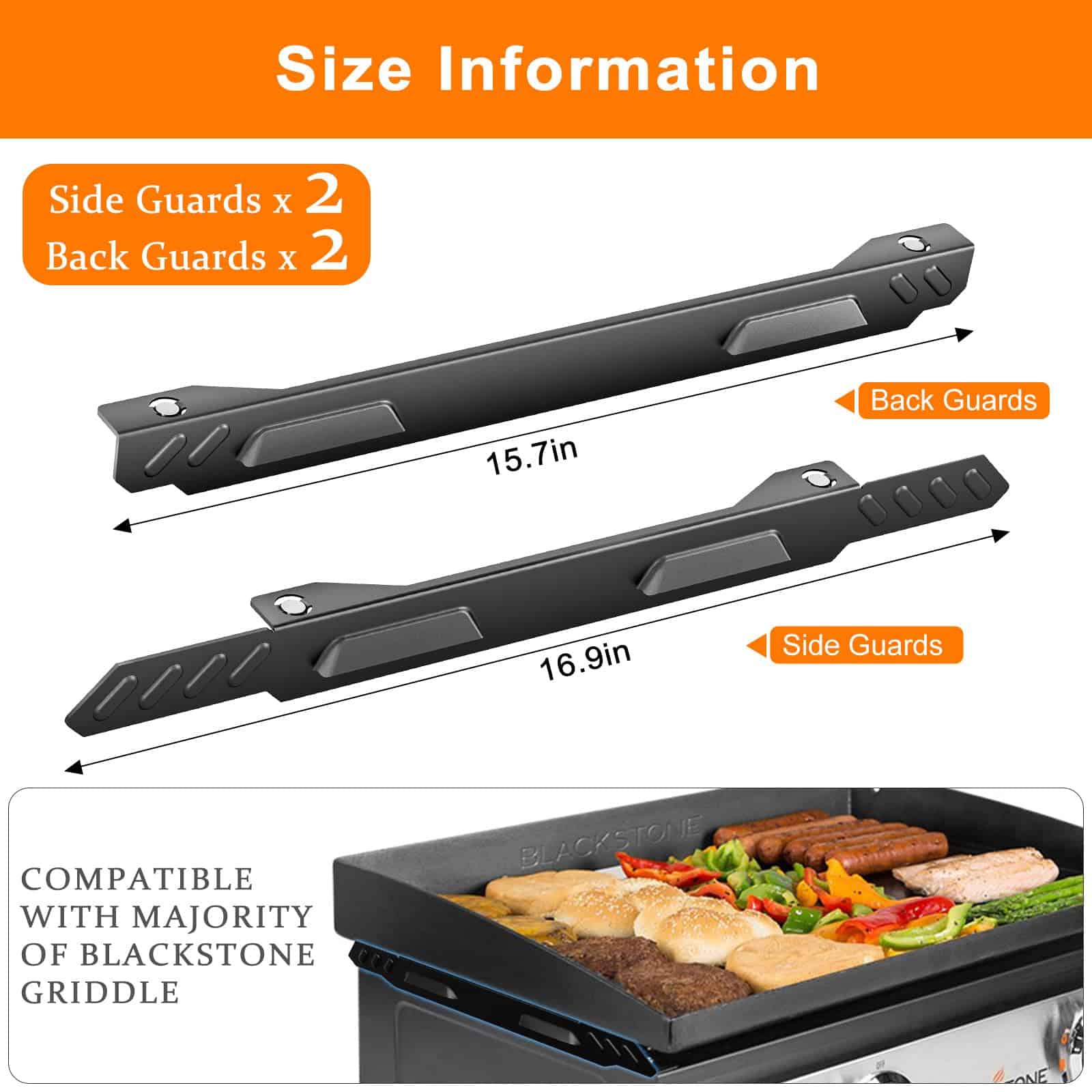 Los protectores de viento son compatibles con la parrilla Blackstone de 36 pulgadas. Ofrecen protección eficaz contra el viento, reducen el impacto negativo de los vientos fuertes y controlan con precisión la temperatura de cocción, manteniendo más calor debajo de la superficie de cocción sin temor a que se apague la llama. Con los protectores de viento Mudvime, su parrilla permanecerá más caliente en condiciones ventosas y frías. Notará que tienen espacios en ellos. Esto permite que algo de calor escape por seguridad y para ayudar a mantener el calor uniforme en la parte superior de su plancha. Los protectores de viento Mudvime ofrecen la mejor protección para su plancha. Los protectores de griddle mantendrán su comida alejada de la fuente de calor y permitirán que algo de calor escape. Simplemente colóquelos en los bordes laterales e inferiores de la plancha, los imanes se adherirán automáticamente en su lugar para completar la instalación sin necesidad de herramientas o fuerza externa. Con estos accesorios para la parrilla, la llama se puede maximizar y el calor de la parrilla también se puede concentrar en la parrilla al cocinar al aire libre. Y puedes dejarlos conectados a la parrilla Blackstone durante los viajes: será el regalo de barbacoa perfecto para los entusiastas de la barbacoa.