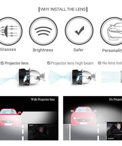 El paquete incluye: 2 x Lente de proyector de diseño en forma de panal de 2.5 pulgadas Anillos de socket H4 y H7 Accesorios de instalación para retrofit de faros, modificación de faros de xenón, reemplazo de proyector bixenon. Específico del artículo: Entrada de energía: vehículos de 12V Dimensiones del proyector: 2.5″ Opciones de línea de corte: Predeterminado LHD (izquierda al volante) – LHD (izquierda al volante) Ajustes: Zócalo H4, H7 Bombillas requeridas: H1 estándar (se recomiendan las bombillas H1)
