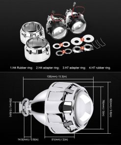 Proyector de lente Mini HID Bi-Xenon de 2.5 pulgadas – 2 Juegos de Marcos Cromados de Calidad Premium Proyector de lente Mini HID Bi-Xenon de 2.5 pulgadas para faro con bombilla H1. Ten una luz elegante y más fresca para tu coche con el proyector de lente Mini HID Bi-Xenon de 2.5 pulgadas. Nuestro proyector de lente puede funcionar como luz alta y luz baja. El proyector de lente proporciona una mejor visibilidad para la seguridad del conductor, reduciendo así los accidentes de tráfico debidos a mal tiempo y condiciones de la carretera. Nuestro proyector de lente está hecho de carcasas de ABS de calidad premium, carcasa de metal y lente de vidrio real para garantizar la máxima resistencia y durabilidad para un uso duradero. Nuestro proyector de lente tiene una lente clara de 2.5 pulgadas en condiciones óptimas. La bombilla xenón y el balasto no están incluidos, puedes utilizar tu kit xenón original, pero asegúrate de que el modelo de la bombilla sea H1. El proyector de lente tiene una clasificación impermeable de IP67 y también es resistente al óxido y al polvo. Tipo de placas adaptadoras: h4/ h7. Compatible con LHD. ¡Alta calidad y mejor servicio para ti!