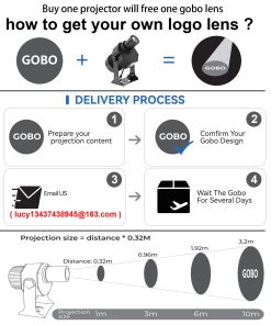 Fuente de luz: LED de 100W 6500K (blanco), vida útil de 50,000 horas Imagen: Estacionaria/Rotativa ajustable Iluminancia: 2800 lux @ 3m, 1150 lux @ 5m Voltaje de entrada: Fuente de alimentación 85 a 120VCA, 50/60 Hz Tamaño del Gobo: 37.5mm exterior, 26mm imagen Ángulo de haz: 15 Proyección Rango: Brillante 42ft, Tenue 65ft, Oscuro 85ft Caja: Aleación de aluminio
