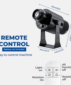 Proyecte su logotipo personalizado en cualquier lugar con este proyector de logotipo de 30W Arxenovath. Con un tamaño de 8.6» x 6.7» x 3.7, este proyector puede proyectar su logotipo a una distancia de 3 a 25 pies, con un diámetro máximo de 100 pulgadas. El control remoto incluido le permite controlar si el logotipo es estático o rotativo. Además, este proyector le brinda la libertad de diseñar y producir cualquier logotipo en el estilo que desee. Aproveche el rango de proyección de 3 a 23 pies incluso en condiciones de luz tenue para destacar su marca.