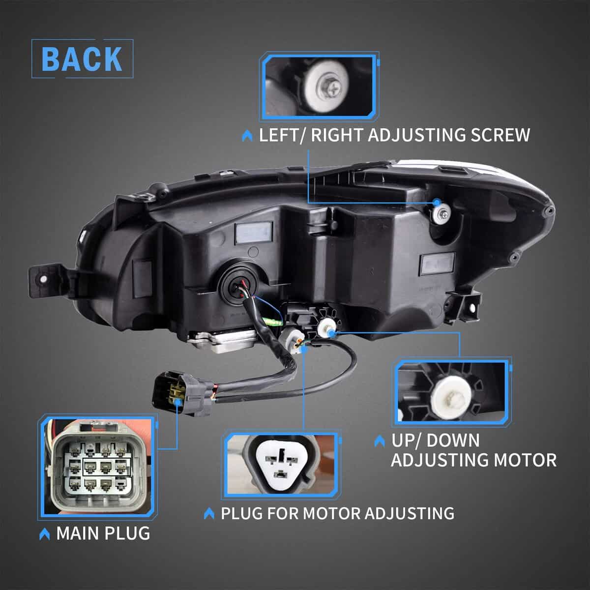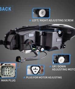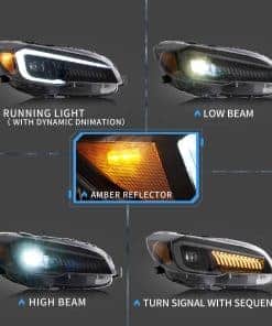 Compatible con los siguientes vehículos: Subaru WRX 2015 2016 2017 2018 2019 2020 2021, WRX Base 2015-2021, WRX Premium 2015-2021, WRX Limited 2015-2021. NOTA 1: No compatible con modelos LED y vehículos con AFS/SRH (La función AFS del vehículo desaparecerá y recibirá una alarma en los modelos con AFS/SRH). 2: Los pines (16 pines y 20 pines) de los conectores principales de los modelos limitados son diferentes a los faros originales. El paquete incluye 1 juego de faros (lados del conductor y del pasajero) 1 conjunto de arnés 1 manual Especificaciones Bombilla: Ninguna (LED COMPLETO) Resistente al agua: IP67. Certificado: DOT. Voltaje de funcionamiento: 12V 35~42W. Funciones: Luces diurnas LED con animación dinámica, luz alta, luz baja y señal de giro secuencial. Color del carcasa: Negro. Color de la lente: Claro. Color del reflector: Ámbar Material de la carcasa: Plástico ABS. Material de la lente: PC. Tipo de ensamblaje: Sellado Atornillado Impacto de OE: Tiene las mismas conexiones y cables que los automóviles originales, reemplazo directo de la Unidad original. Diseñado para proporcionar una instalación sin problemas, se instala fácilmente.