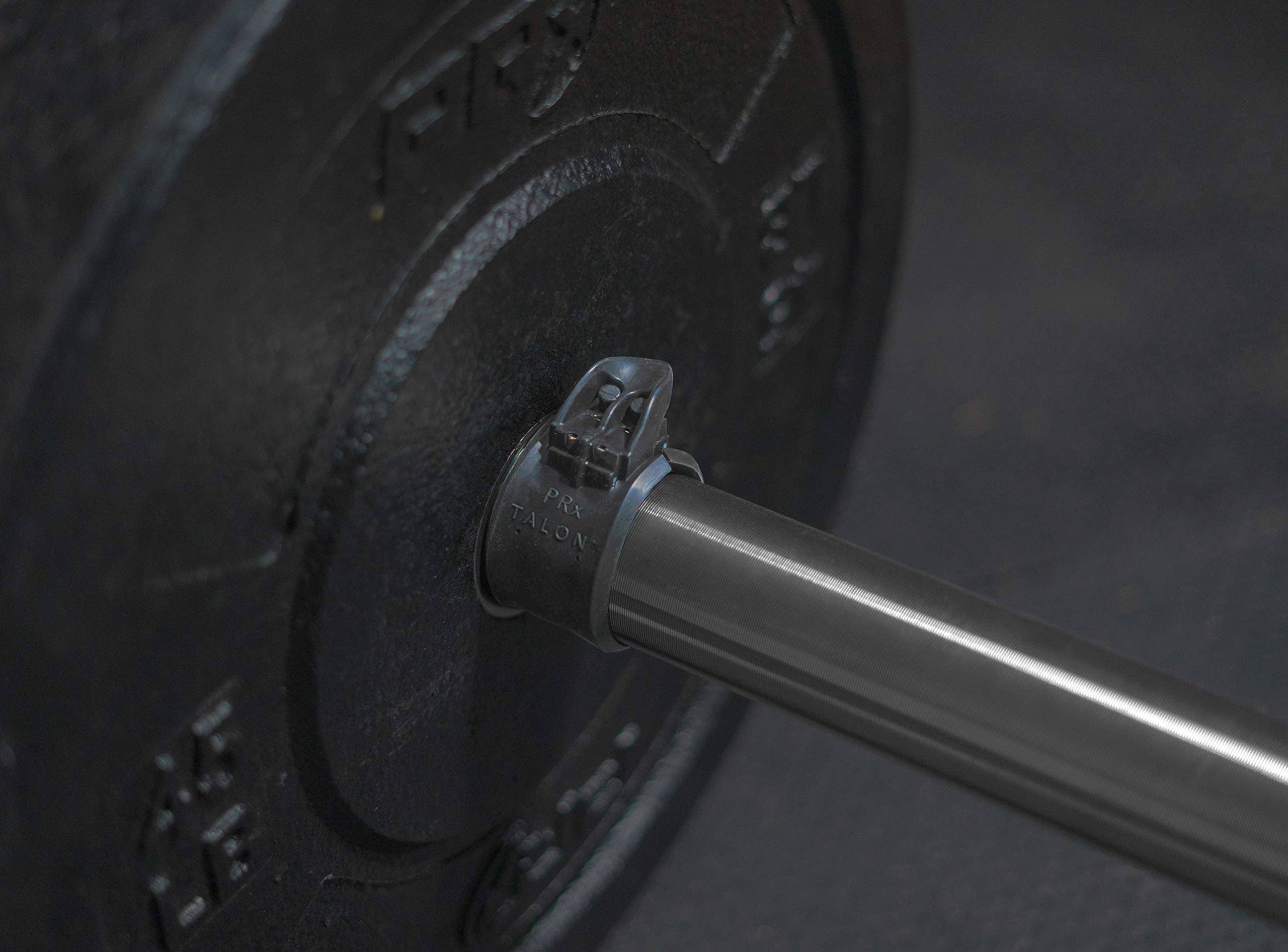 1. USABILIDAD: Coloque fácilmente el collar de barra Talon alrededor de la manga de la barra y tire de la pestaña diseñada para quitarlo rápidamente y cambiar los pesos.