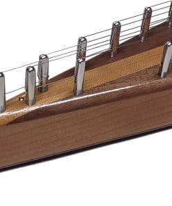 Estos psalterios son nuestros más grandes (25 pulgadas de largo x 8 pulgadas de ancho x 2 3/4 pulgadas de profundidad) y los de mejor sonido hasta el momento. Tienen rieles de marco de cerezo con una zona de clavijas de arce duro. La parte superior o tabla de sonido es de nogal negro bookmatched con una franja y puente de cerezo en contraste. La parte inferior también es de nogal negro bookmatched. Cada uno es una pieza de arte musical hecha a mano que puede ser disfrutada por músicos de todas las edades. Nuestros psalterios han sido afinados varias veces, pero pueden necesitar una leve afinación después del envío. El precio incluye dos arcos, resina, llave de afinación y una bolsa de lana.