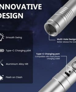 El sable de luz Pskikkp Metal Hilt 12 Colores es el regalo perfecto para niños y niñas de edades comprendidas entre los 3 y los 10 años. Con 12 colores y 3 modos de sonido para elegir, este sable de luz ofrece una experiencia única y emocionante. El Hilt está diseñado para ser cómodo y suave al tacto, fabricado con una aleación de aluminio de aviación y procesado con un excelente tratamiento de chorreado de arena. Además, para una experiencia de combate realista, el Pskikkp RGB Light Dueling Saber combina efectos especiales de sonido de combate y modos de flash. Equipado con carga Type-C y una batería de 1200 mah, este sable de luz se carga en 3 horas y ofrece hasta 4 horas de uso continuo. El diseño innovador incluye indicadores en el mango para facilitar la supervisión y carga del cliente, con luces rojas indicando carga y luz verde indicando la batería llena. ¡Hazte con el tuyo hoy y disfruta de emocionantes batallas intergalácticas!