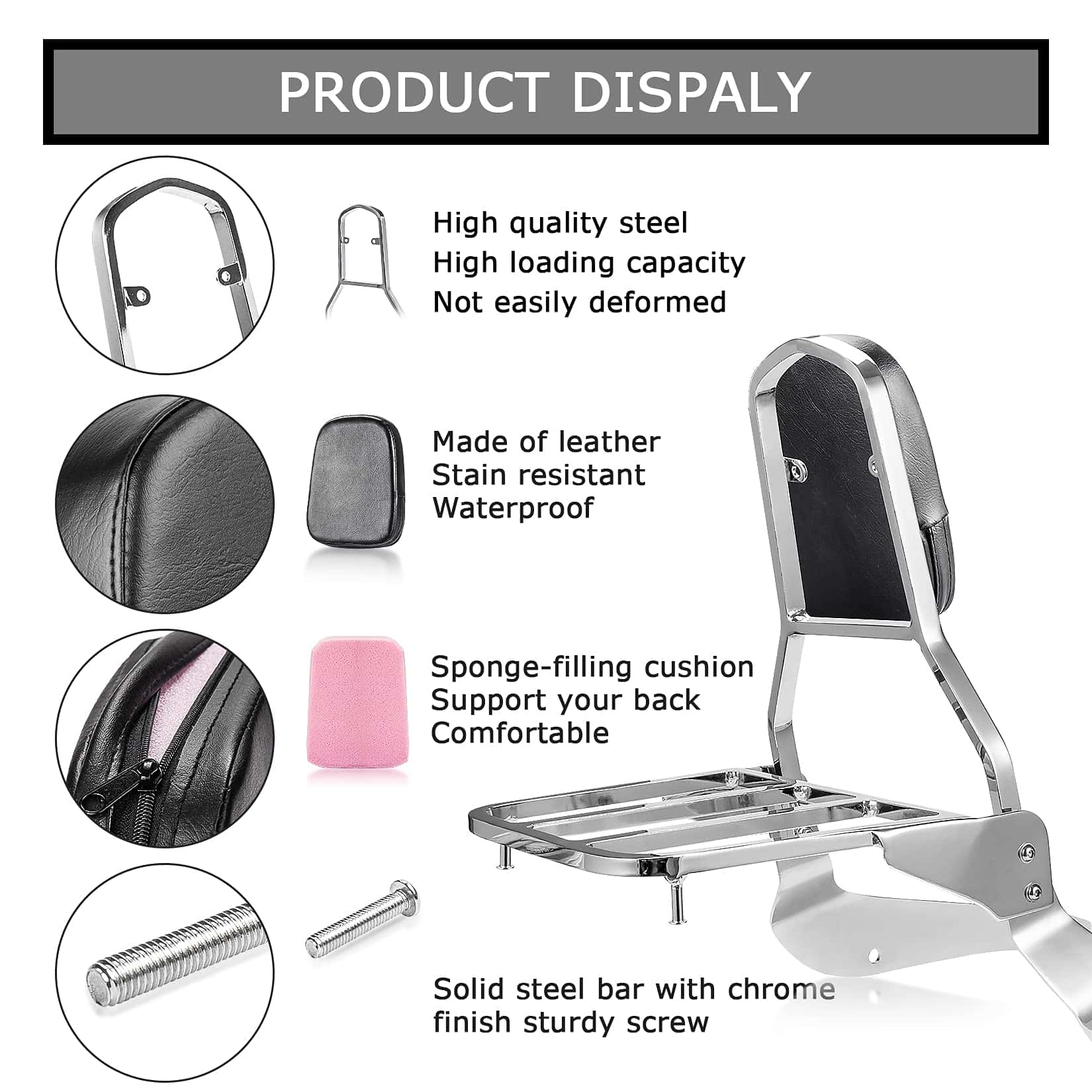 2. Proporciona soporte completo para la espalda baja. La superficie está hecha de cuero, resistente a la suciedad y al agua. Cojín de relleno de esponja, proporcionando soporte completo para la espalda baja y mejorando la comodidad de conducción en un viaje largo.