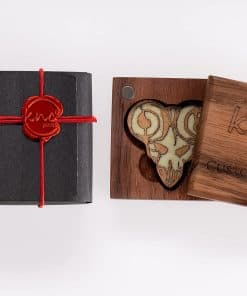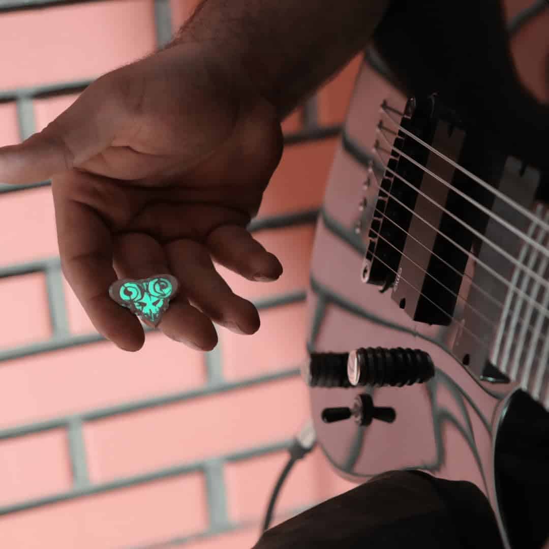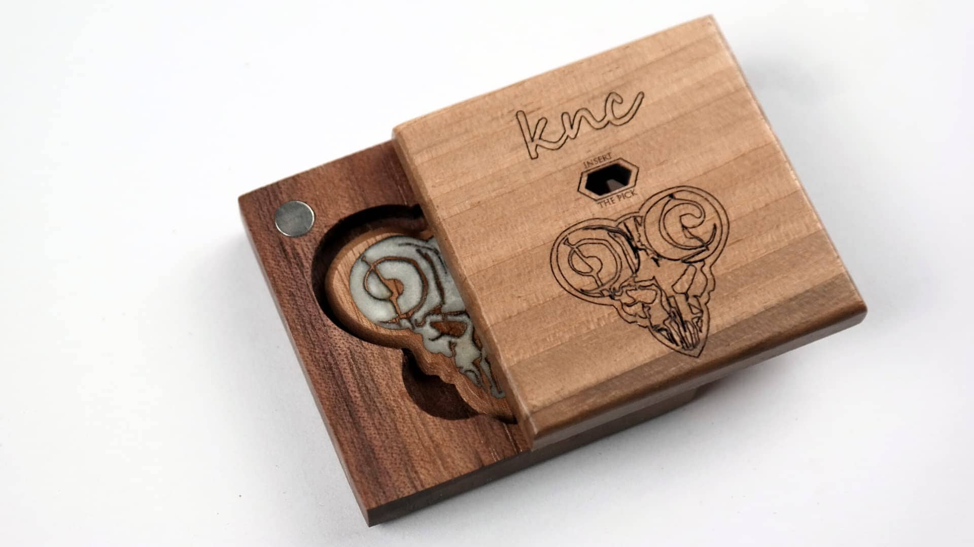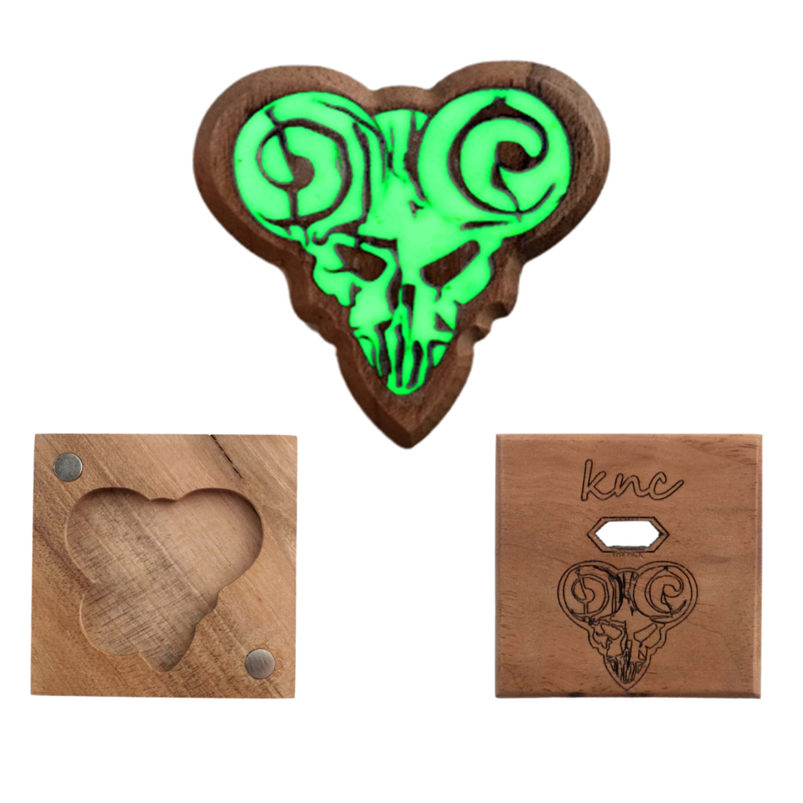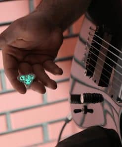 Púa legendaria del Destino con increíble bandeja de nogal. ¡Y brilla en la oscuridad! Nuestras púas de guitarra hechas a mano están fabricadas con materiales orgánicos sostenibles estrictamente. Las producimos con incrustaciones que brillan. No solo se ve increíble, ¡también es genial para tocar! Enviamos esta increíble púa de guitarra con una hermosa caja de madera hecha de maderas exóticas (como nogal o padouk) y la envolvemos con papel negro sellado con cera. Tendrás el regalo definitivo para un ser querido, un amigo o simplemente puedes darte un capricho. – Púa de Destino de nogal con incrustaciones que brillan en la oscuridad – Grosor de 3-4 mm – Se envía con caja de nogal – Dimensiones de la caja: 45x45x14mm – No tiene acabado dañino en la caja, aceitado con productos naturales – Estamos orgullosos de plantar un árbol por cada envío – El soporte naranja en la primera foto es solo para fines de visualización: no está incluido en el paquete