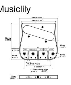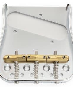 Puente curvado de Telecaster de placa de latón sólido de 54mm (2-1/8 pulgadas) con 3 selletas compensadas, cromado. Este puente está diseñado para adaptarse a guitarras eléctricas estilo Tele, permitiendo la carga superior y el uso combinado a través del cuerpo. Con un espaciado total de cuerdas de 10.8×5 54mm (2-1/8 pulgadas) y un espaciado de 4 orificios para tornillos de montaje de 21.5×3 64.5mm (2-35/64 pulgadas), este puente garantiza una instalación adecuada y estable. La placa de latón sólido y las selletas se fabrican utilizando una técnica de procesamiento digital CNC precisa, lo que proporciona más sustain y estabilidad. Las selletas compensadas mejoran la entonación de las cuerdas y ofrecen un tono fino y equilibrado. Con una apariencia curva suave, acabado de calidad y durabilidad excepcional, este puente es una excelente elección para mejorar el rendimiento de su guitarra. El paquete incluye 1 pieza de puente Tele y los accesorios de montaje necesarios para una instalación rápida y sencilla.