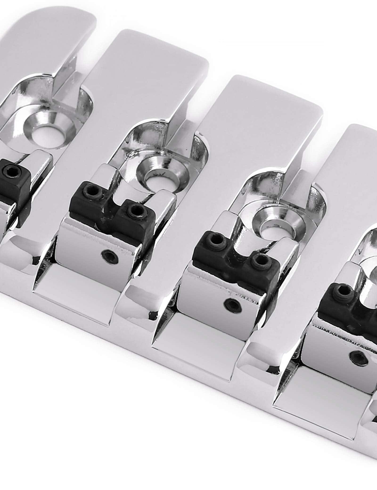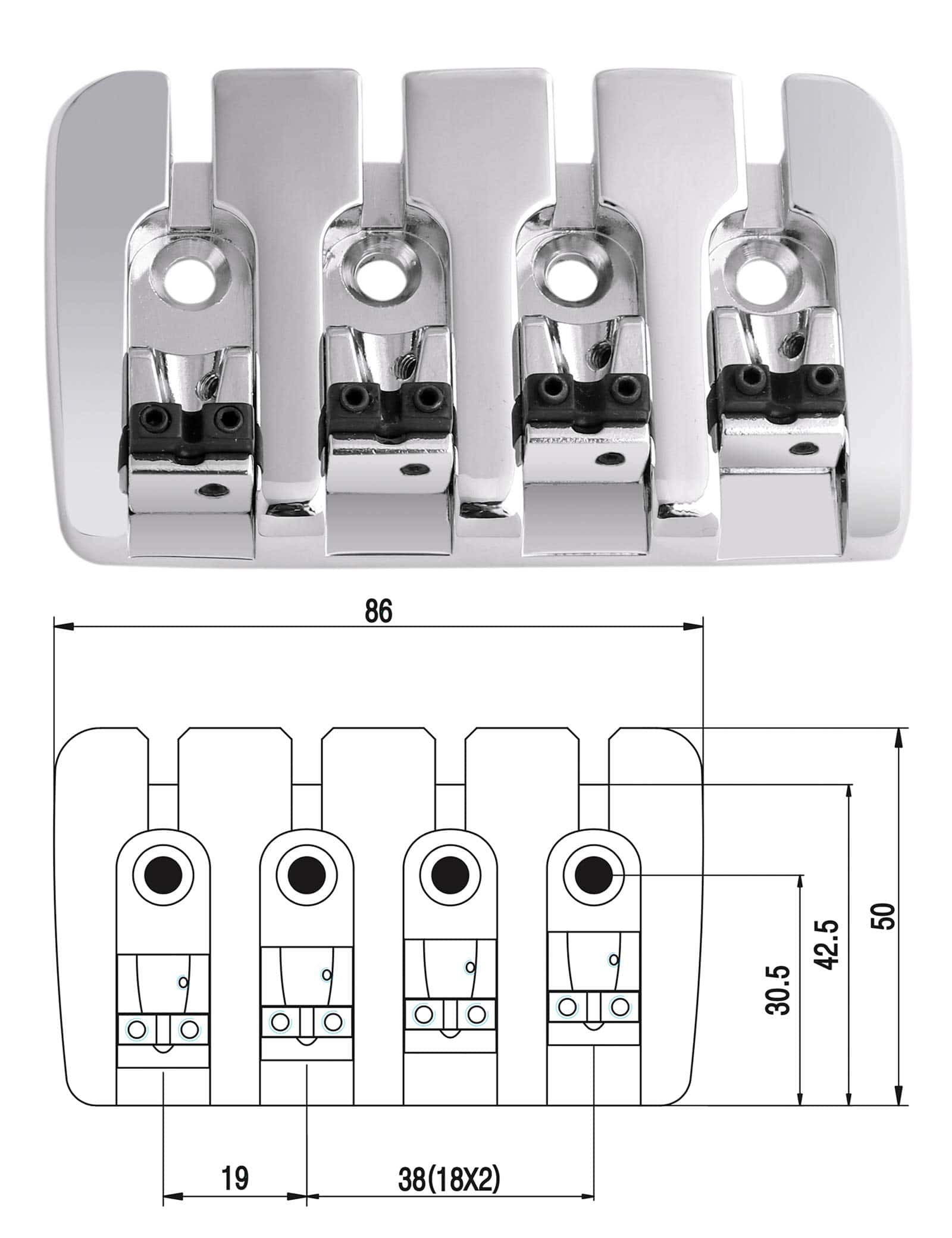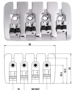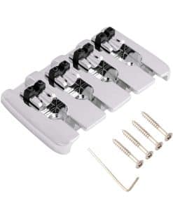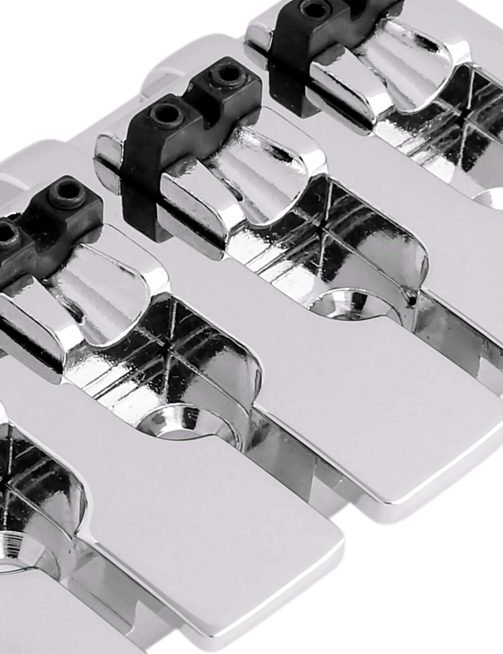 Sistema de montaje de 4 agujeros, con selletas de zinc ajustables individualmente, que se ajustan tanto en altura de cuerda como en entonación.