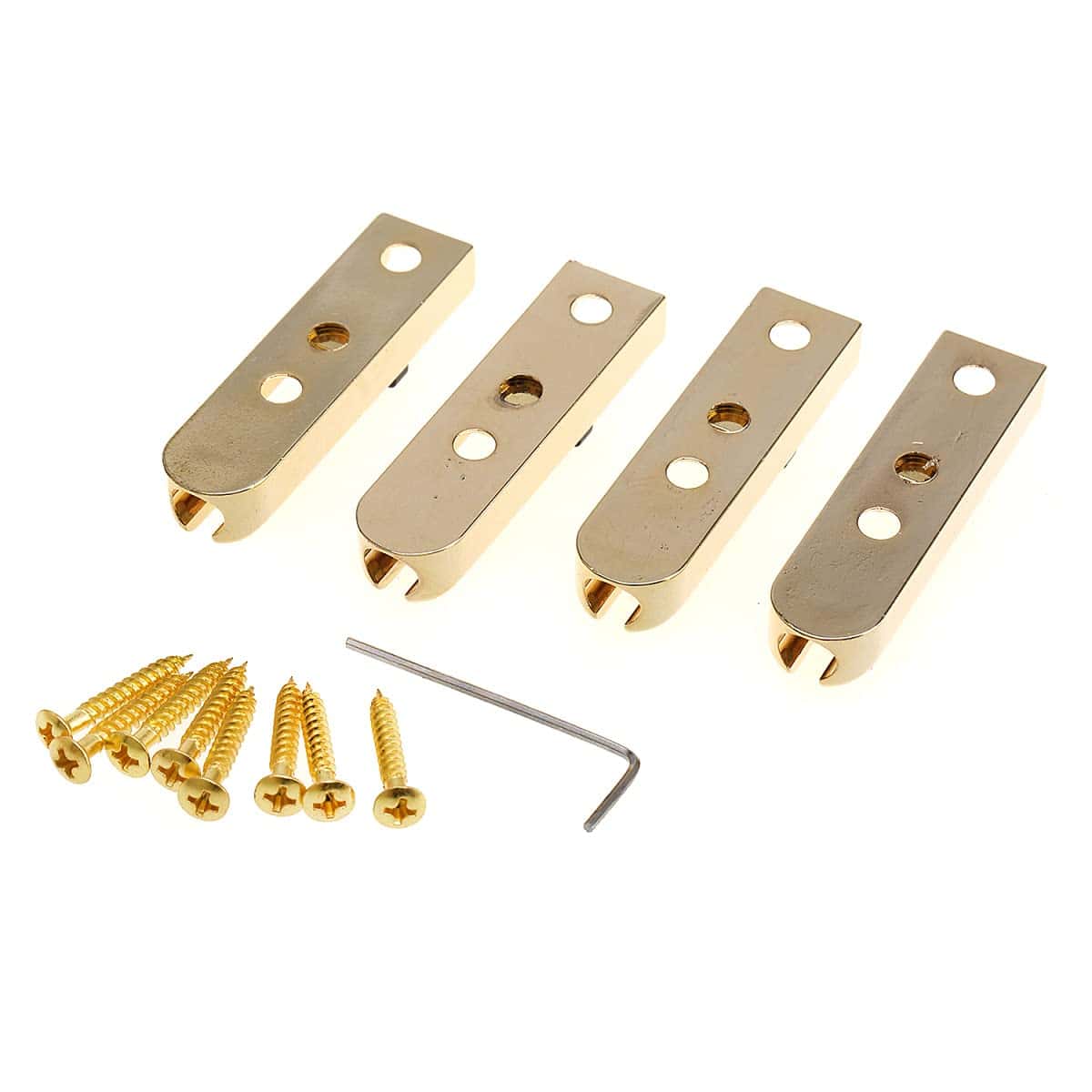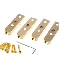 Puente de bajo eléctrico de bloqueo individual de cuerda única Musiclily Pro para bajo de 4 cuerdas, Dorado (Set de 4). Este puente te permitirá ajustar de manera individual las cuerdas de tu bajo para lograr la configuración ideal. Con selletas de bloqueo de aleación de zinc y placa de acero, este puente es resistente y duradero. Puedes utilizarlo como puente de carga superior o a través del cuerpo, permitiéndote la máxima versatilidad en la creación de tus cuerdas. Con un espaciado de cuerdas ajustable, este puente te brindará la libertad de personalizar tu sonido de bajo según tus preferencias. Ideal para músicos que buscan una solución de puente confiable y de alta calidad para su bajo de 4 cuerdas.