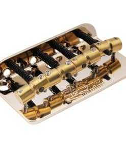 Puente de bajo Wilkinson WBBC con selletas de latón para bajo de 4 cuerdas Precision/Jazz Bass, color dorado. Este puente es una excelente opción de actualización para muchos bajos Jazz Bass y Precision Bass originales o de estilo similar. Con un espaciado de cuerdas de 2-1/4 pulgadas y un espaciado de agujeros de montaje de 11/16 pulgadas, las selletas de latón de estilo auténtico montadas en la placa base de acero doblado de calibre correcto crean el puente de bajo vintage perfecto, similar al original. Estas son piezas genuinas de Wilkinson, ideales para reemplazar un puente existente o para la creación de un instrumento hecho a mano con un tono clásico. Incluye tornillos de montaje del puente y llave de selletas para una fácil instalación.