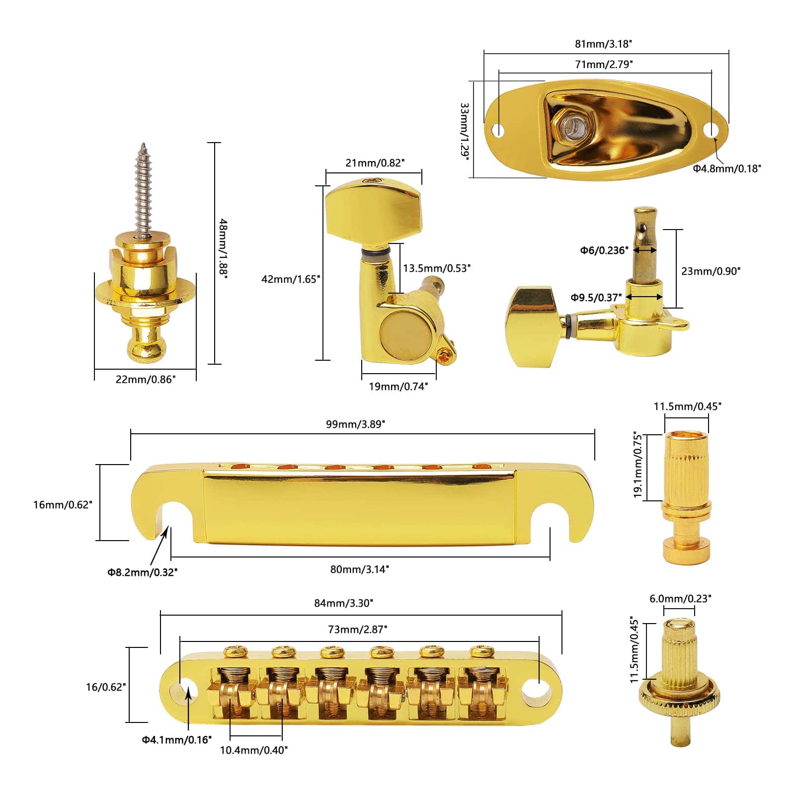 3L3R Afinadores de Guitarra +6 casquillos roscados+6 casquillos metálicos +6 tornillos