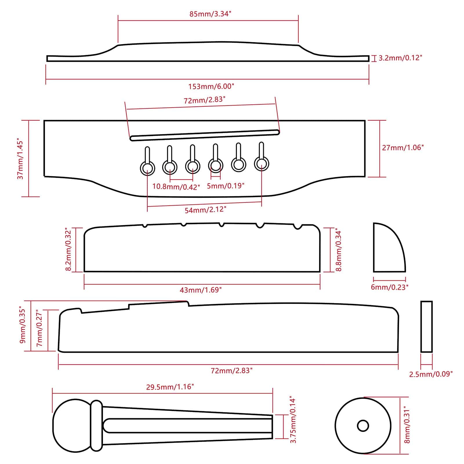 Puente de guitarra acústica Unxuey con montura de sillín y
