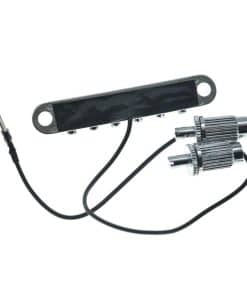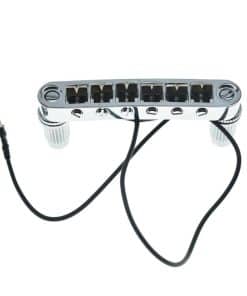 Puente de guitarra KAISH LP Tune-o-Matic con pastilla de puente piezoeléctrica LP para Epiphone Les Paul/SG/ES/Dot Cromado. 12″ de radio; cada sillín tiene un pequeño piezoeléctrico pegado para capturar el movimiento físico del sillín al tocar la cuerda. La salida del pequeño piezoeléctrico debe ser alimentada en un preamplificador para darle el nivel de salida necesario para equilibrar con las pastillas magnéticas estándar de una guitarra eléctrica. Cada sillín contiene una pastilla en miniatura de alta salida que se combinan para producir hermosos tonos acústicos cálidos. Bien hecho; anillos de retención de sillín de alta estabilidad para eliminar el cascabeleo del sillín; equipado con un conector de extremo de 3mm, pero esto se puede quitar si no estás conectando esto a un preamplificador. Simplemente quita el conector y suelda los cables de tierra y en vivo a un interruptor o directamente al jack de salida. Tienen sillines de cuerda móviles para entonar cada cuerda individualmente y cabezas de tornillo en la parte superior de los postes para un ajuste de altura fácil. Los agujeros de los postes miden 74 mm en el centro; ancho total 86 mm; espaciado de cuerdas 10.4 mm (52 mm en total); diámetro de montaje del poste es de 6 mm; diámetro exterior de los postes: 12 mm; Estos puentes están hechos según especificaciones de importación y se ajustarán perfectamente a guitarras Epiphone Les Paul/SG/ES/DOT/Flying V y guitarras similares.