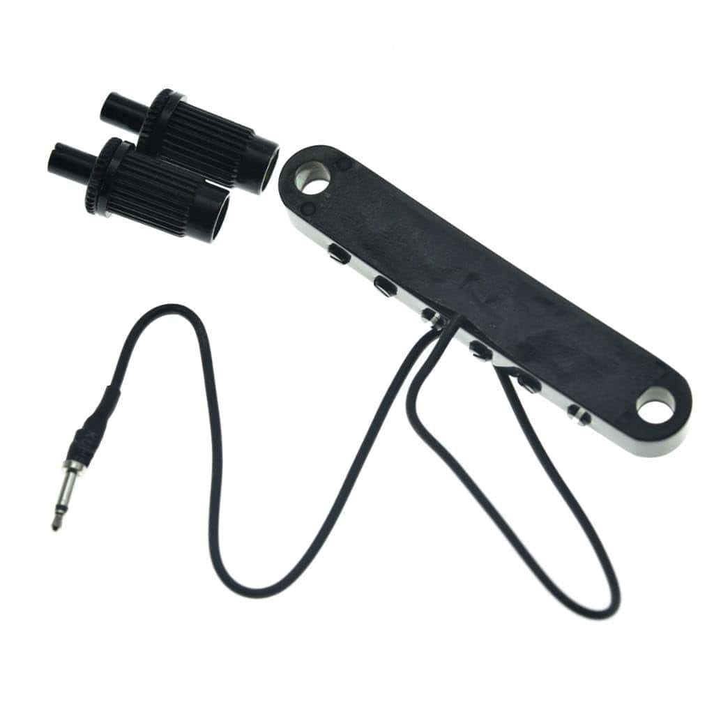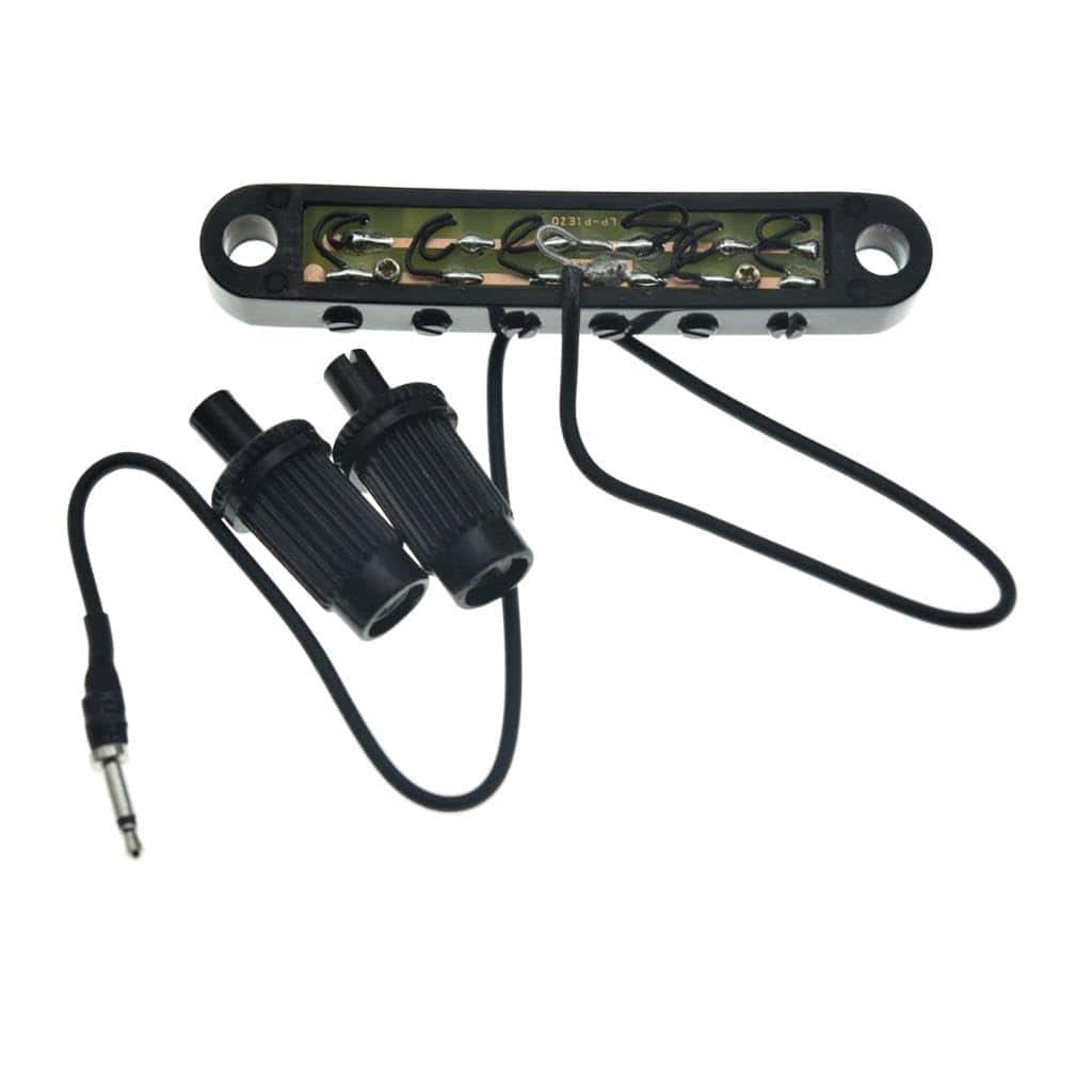 Puente de Guitarra Piezo LP Tune-o-Matic KAISH con Pastilla LP para Epi Les Paul/SG/ES/Dot Negro es un complemento ideal para guitarras eléctricas que desean obtener tonos acústicos de calidad. Este puente incluye transductores de piezo en cada selleta para lograr un sonido acústico auténtico con un solo interruptor. La alta estabilidad de las selletas y la facilidad de ajuste de la altura hacen que este puente sea una excelente opción para los guitarristas que buscan versatilidad en su sonido. Con un diseño bien hecho y hecho a especificaciones de importación, este puente es compatible con guitarras Epiphone Les Paul/SG/ES/DOT/Flying V y ofrece una instalación sencilla para obtener resultados de calidad.