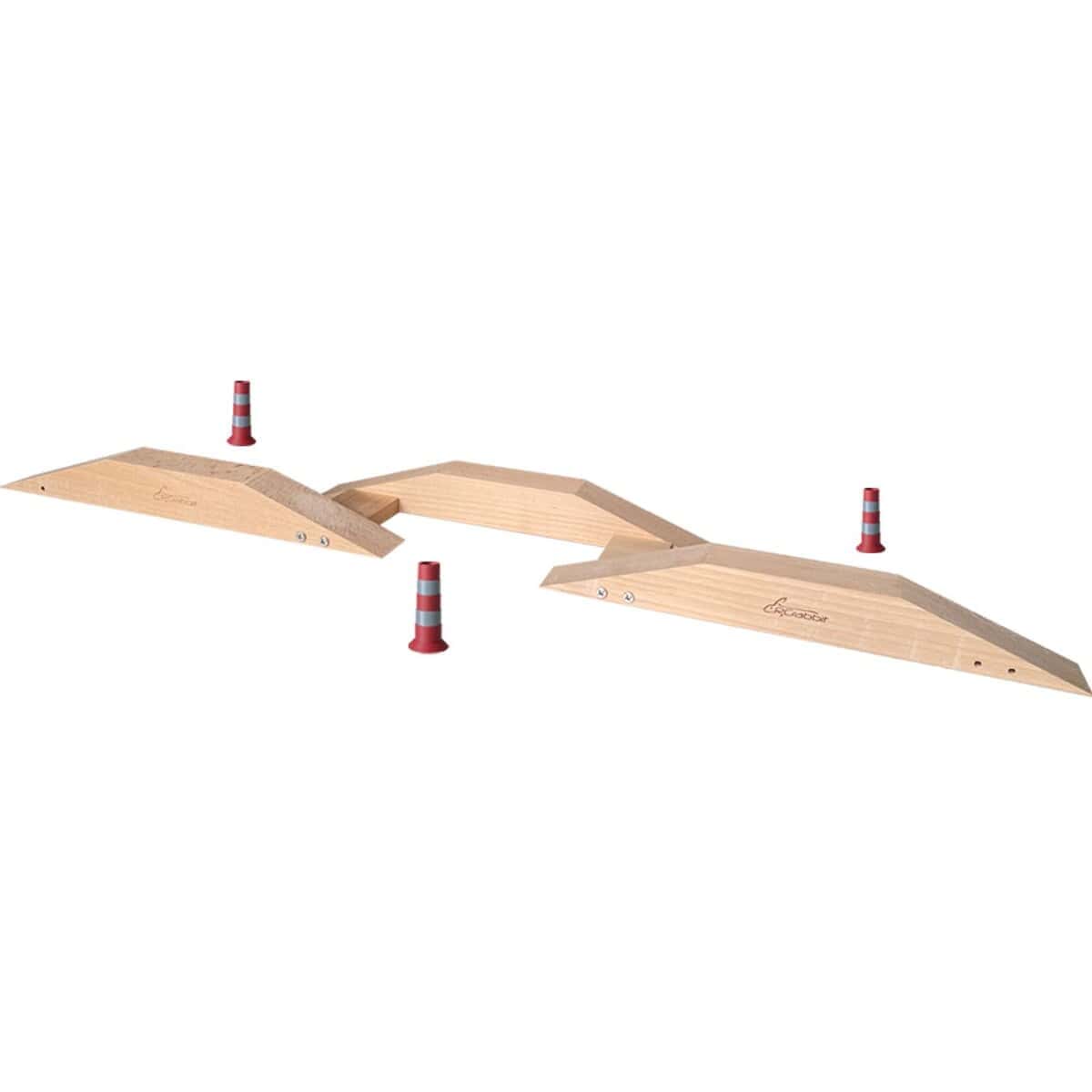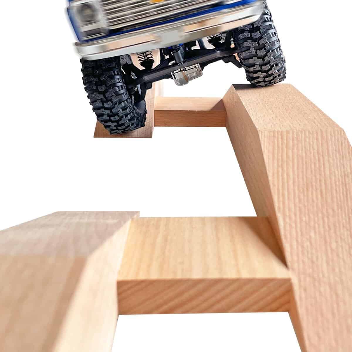 Este Puente de modelo básico con superficie irregular pondrá a prueba tus habilidades de conducción a control remoto. Al enfrentar estos obstáculos irregulares, una rueda del eje trasero quedará en un estado de suspensión, lo que requerirá un control constante y maniobras precisas para superar el desafío. Además, mejora tu precisión de conducción con conos de tráfico estratégicamente ubicados a cada lado del puente. El producto está hecho de madera de haya natural, disponible en 2 y 3 piezas. Puedes combinar fácilmente para extender tu pista indefinidamente al agregar dos o más juegos. Perfecto para camiones RC a escala 1/18 y 1/24 como fcx24, fcx18, trx4m, scx24. Uso versátil tanto en interiores como en exteriores.