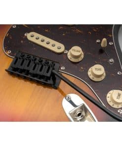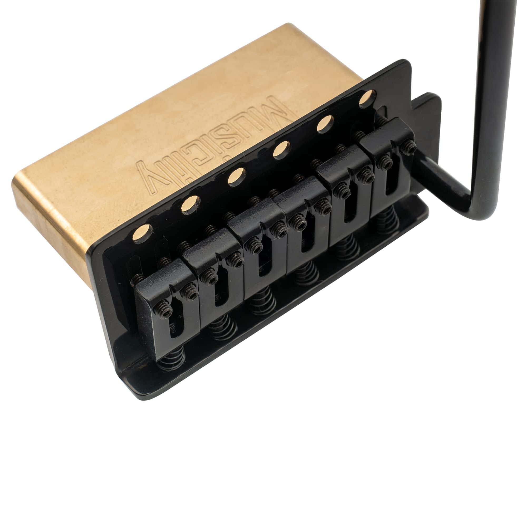 Se adapta a guitarra eléctrica estilo Squier Strat, diseño de 6 tornillos, por favor revise el tamaño de su guitarra antes de comprar. Espaciado de cuerdas: 52,5 mm (2-1/16 pulgadas), espaciado de agujeros de montaje: 52,5 mm (2-1/16 pulgadas). Selletas de aleación de zinc estilo moderno, placa de acero, bloque de latón macizo de 40 mm de altura que proporciona mejor sustentación, brazo de trémolo de acero de 5,8 mm enroscado