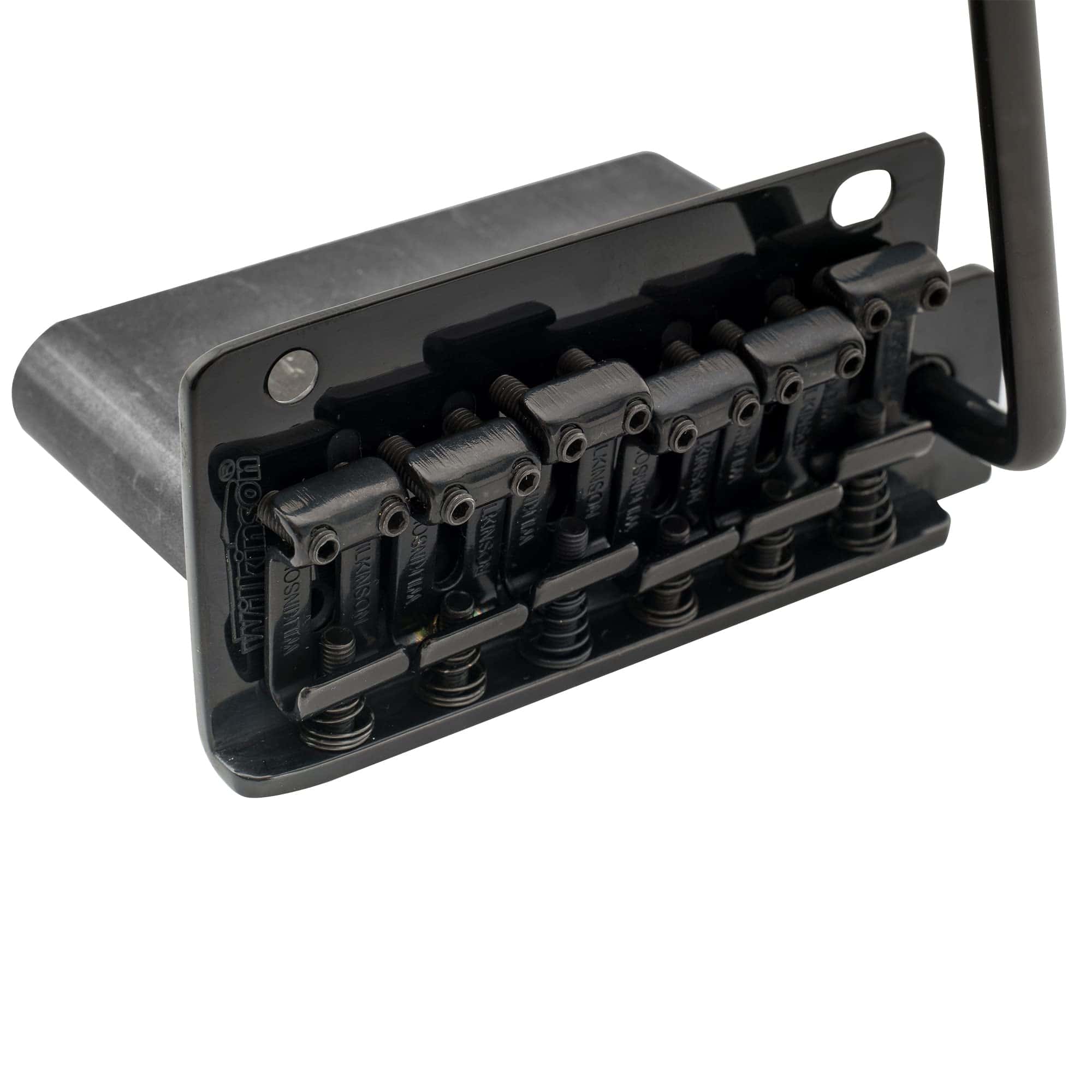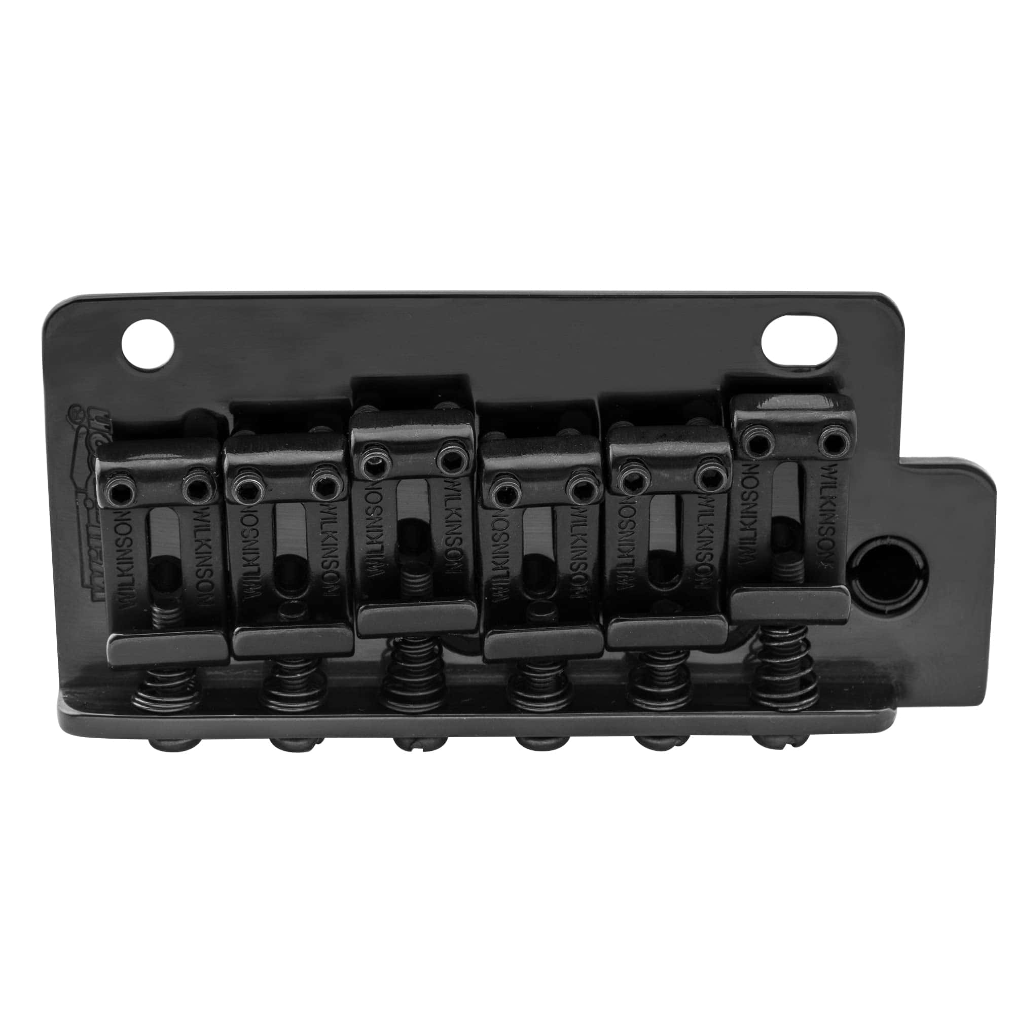 Puente de trémolo de guitarra Wilkinson WV2-SB de 54 mm con selletas de acero vintage y bloque de acero sólido para Strat importada y Strat japonesa, color negro. Con capacidad para adaptarse a muchas guitarras en estilo Strat importadas y fabricadas en Japón, este puente de trémolo es una opción versátil para los músicos que buscan una mejora en su guitarra. Hecho con piezas genuinas de Wilkinson, fabricadas en Corea y distribuidas por Musiclily, este puente presenta selletas de acero doblado vintage con sello de Wilkinson, un bloque de acero sólido completo con 41mm de profundidad y una barra de brazo de trémolo de inserción para ajustar la tensión. Los agujeros de cuerda escalonados en el bloque de sostenimiento permiten que las cuerdas sigan la línea de entonación natural de las selletas, lo que proporciona una estabilidad de afinación incomparable. Este juego incluye el puente completo y los accesorios de montaje necesarios para su instalación.