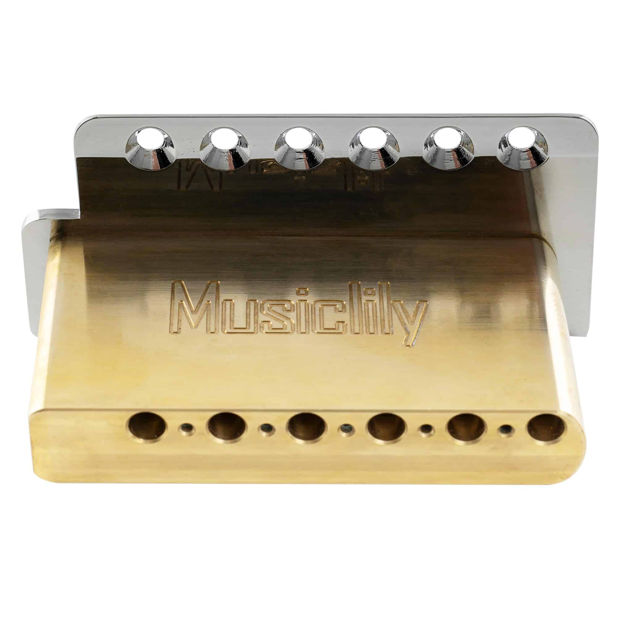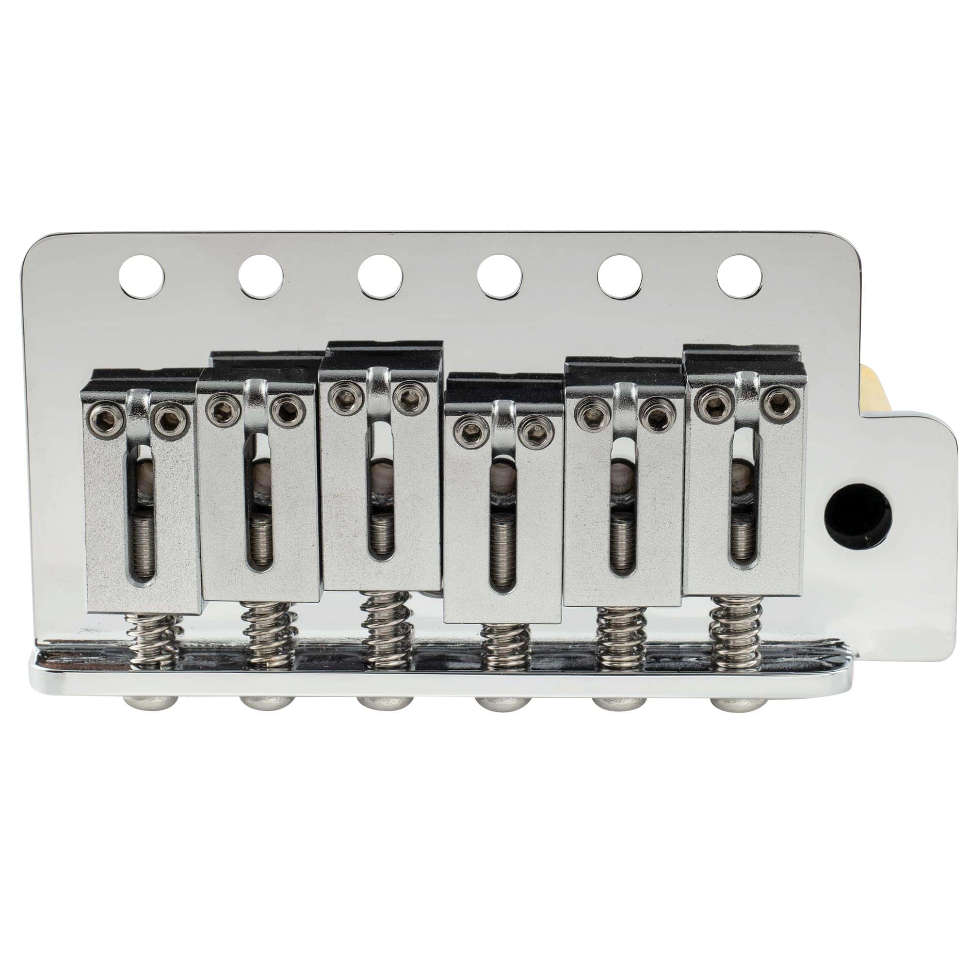 Musiclily Ultra 52.5mm (2-1/16 pulgadas) Puente de Trémolo Estándar con 6 Tornillos ST con Modernos Sillines de Latón y Bloque Sólido de 36mm y Brazo Push-In para Guitarra Eléctrica Estilo Strat, Cromado.