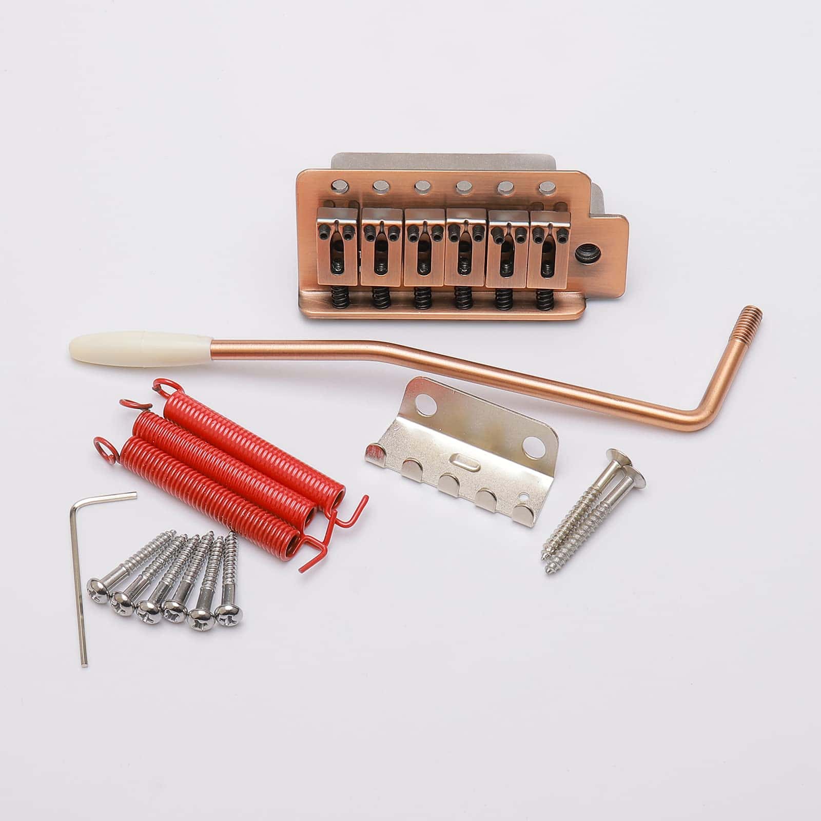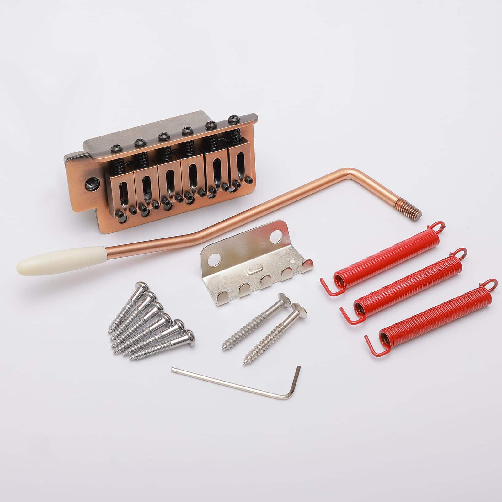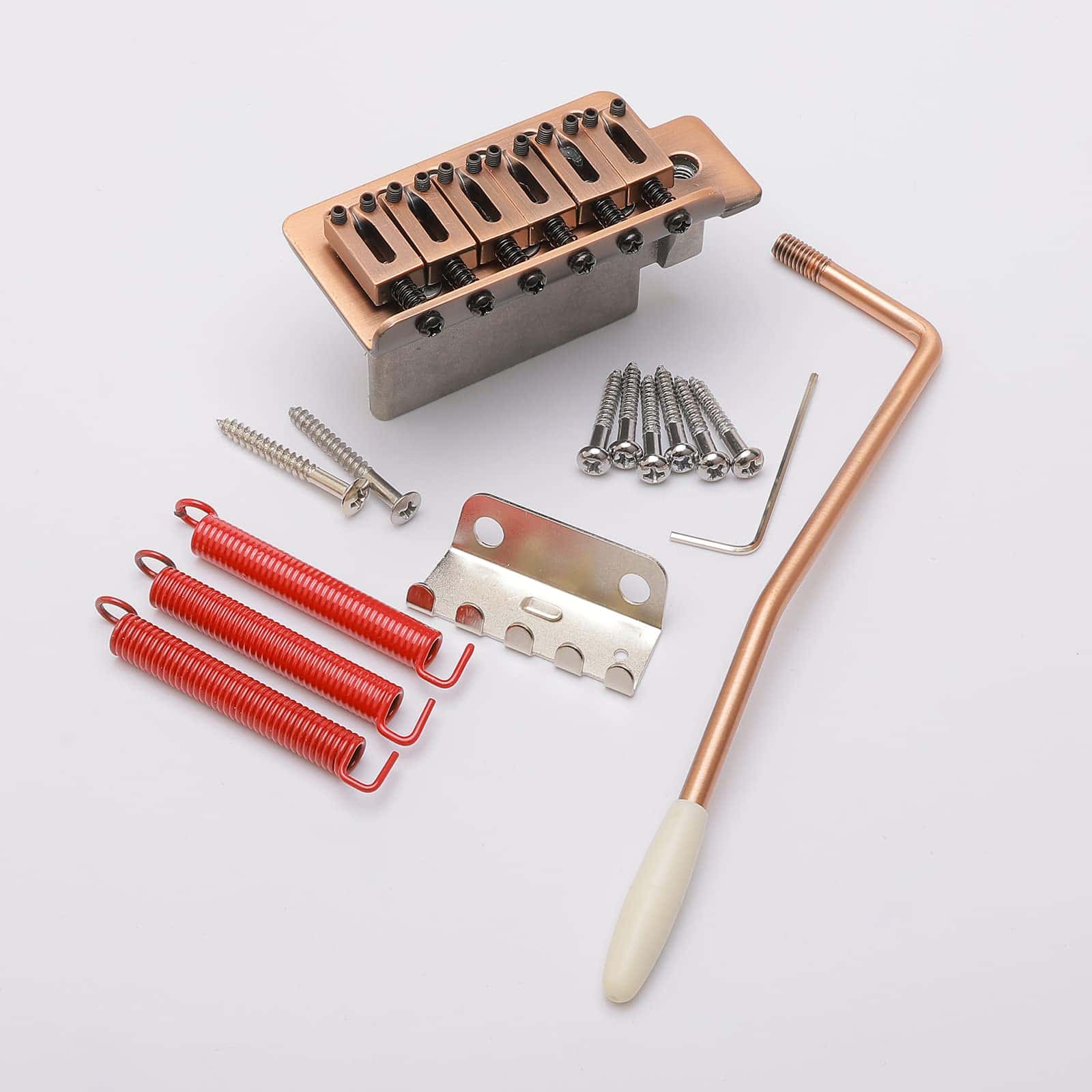 1 x Puente 3 x Muelles 1 x Garra de muelle 1 x Brazo de trémolo 1 x Llave 8 x Tornillos (2 unidades para la garra de muelle, 6 unidades para el puente) 1 x Destornillador 1 x Enrollador de cuerdas 3 EN 1