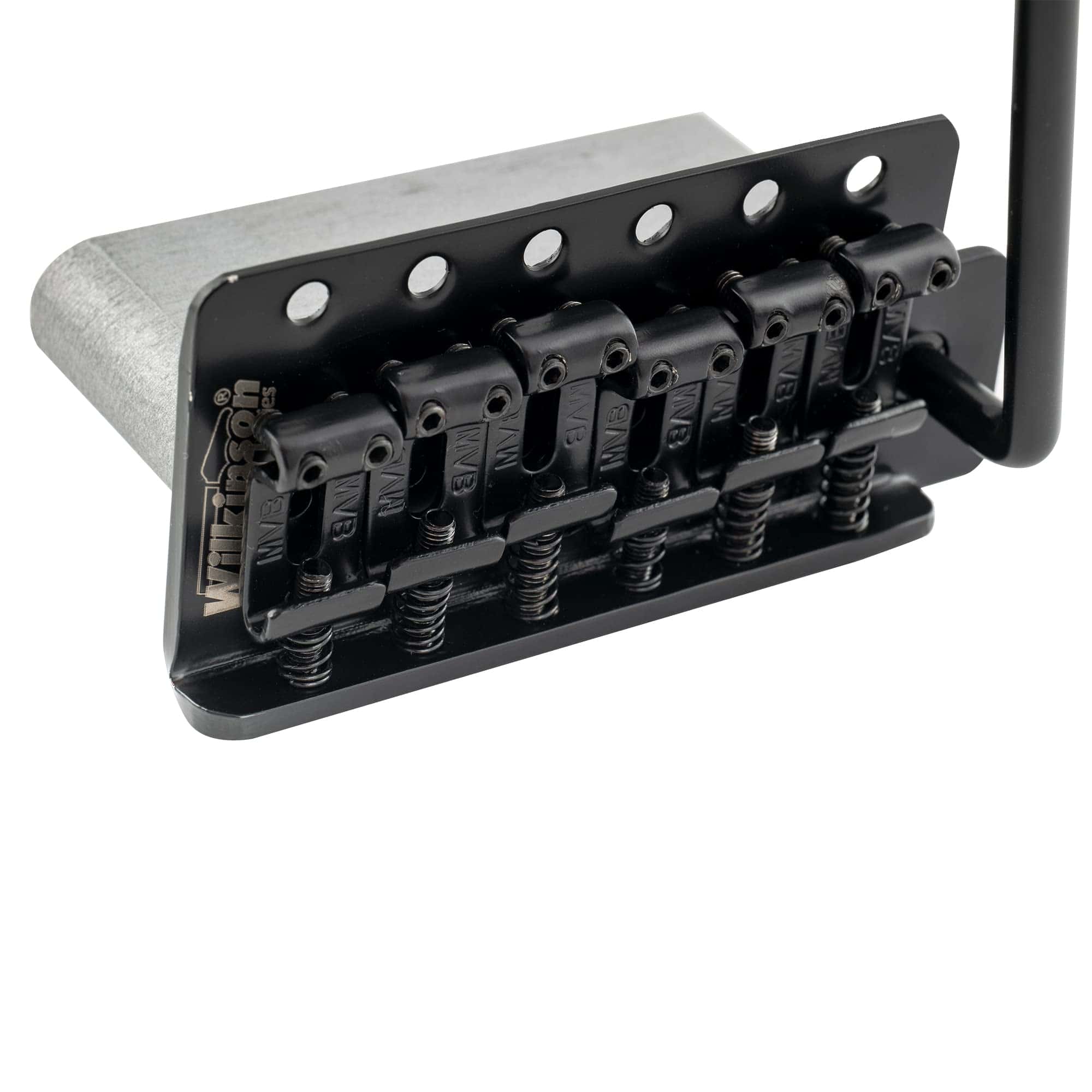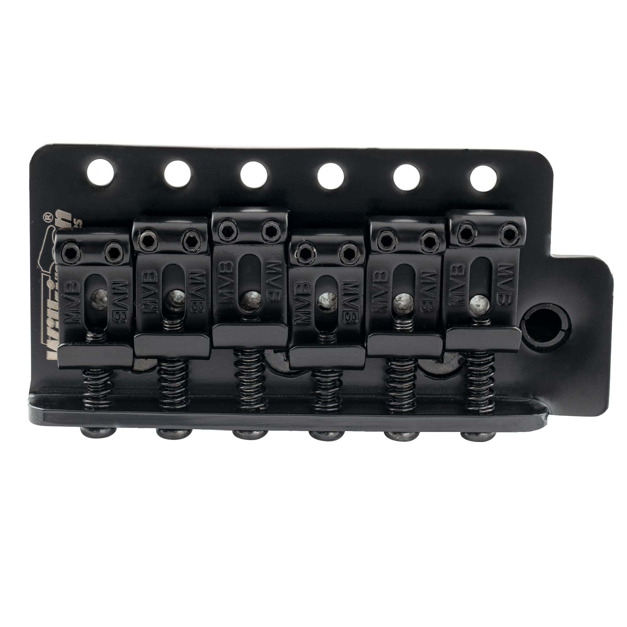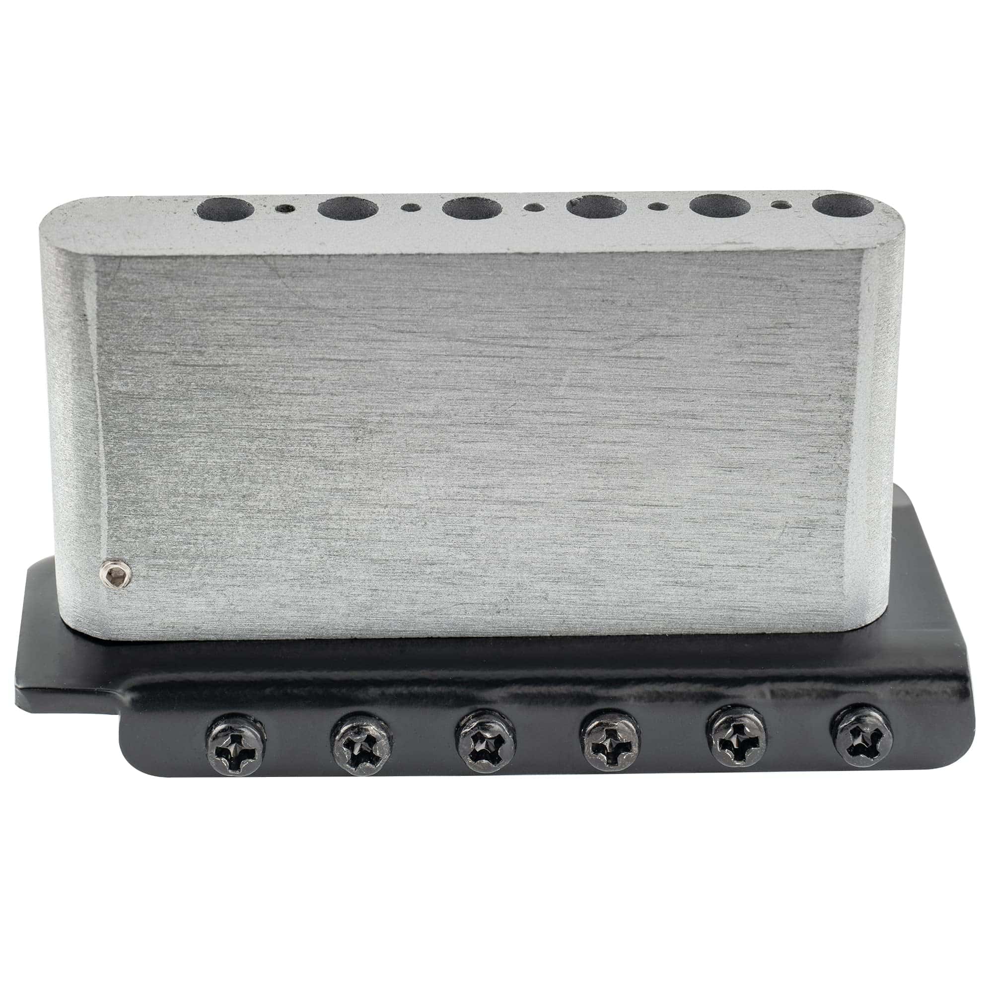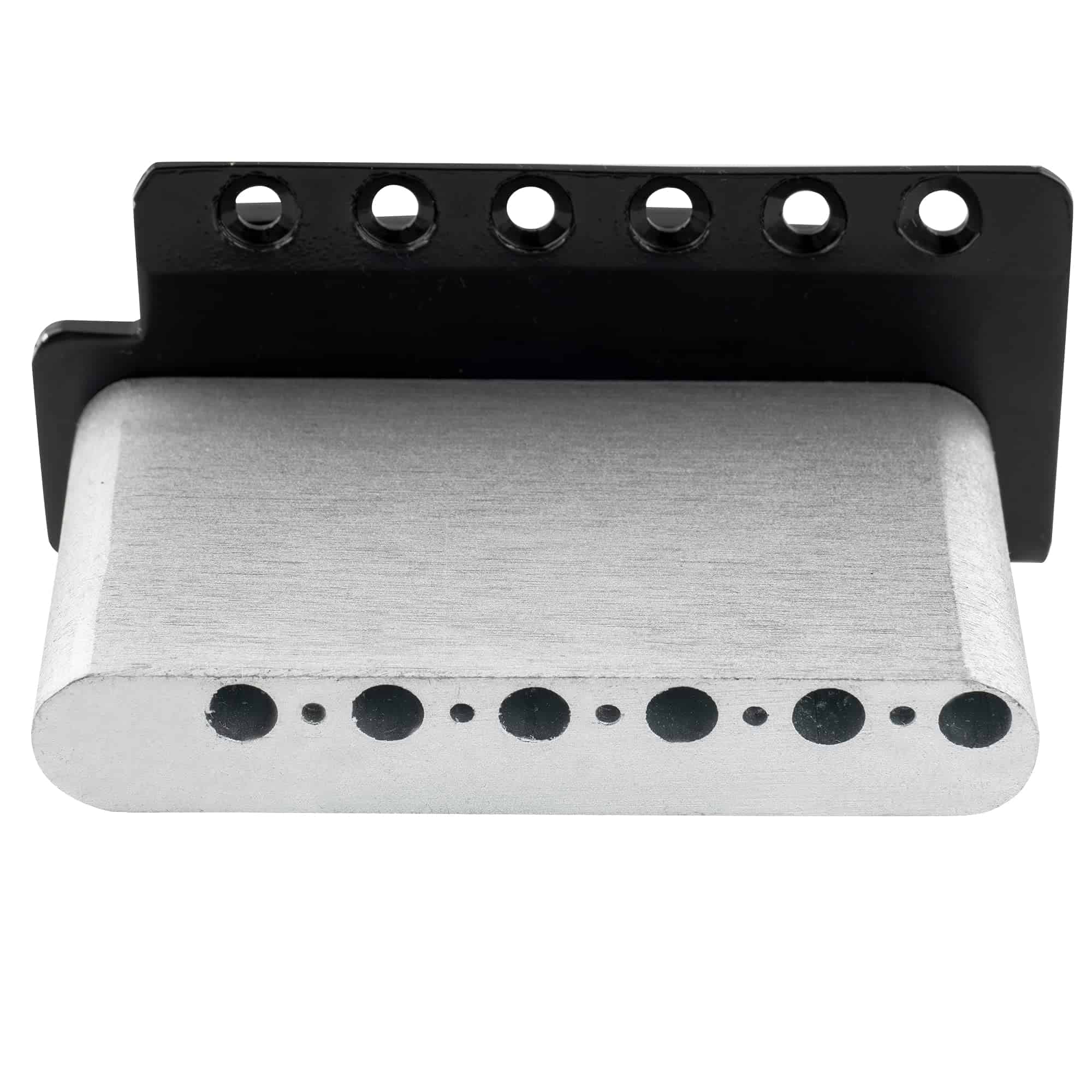 Puente de trémolo para guitarra eléctrica estilo Strat de 54 mm (2-1/8 pulgadas) con espaciado de cuerdas de 6 tornillos estilo vintage, selletas dobladas y bloque de 36 mm con brazo de empuje de inserción para guitarra eléctrica estilo Strat, negro.