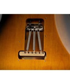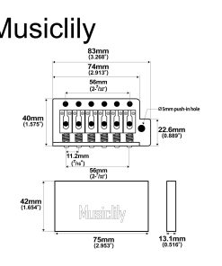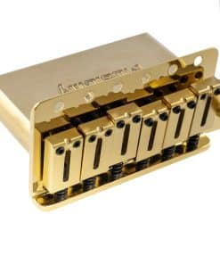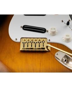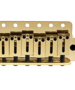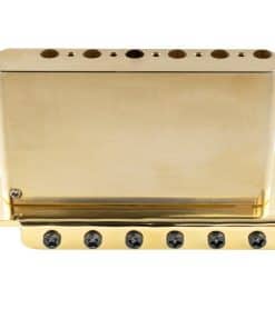 Puente de trémolo ST de estilo vintage americano de 56 mm (2-7/32 pulgadas) Musiclily con selletas modernas de latón de 42 mm de bloque sólido y brazo push-in para guitarra eléctrica estilo Strat, color dorado. Este puente de trémolo está diseñado para adaptarse a guitarras eléctricas con sistema de trémolo de 6 tornillos. Con selletas modernas de latón macizo, placa de acero inoxidable, brazo de trémolo push-in de acero inoxidable de 5 mm y bloque sólido de latón de 42 mm de profundidad, este puente ofrece un sustain mejorado. Procesado con precisión mediante tecnología CNC digital, este puente es estable, duradero y proporciona un acabado de calidad. Es una excelente opción para mejorar tu guitarra. El paquete incluye un juego completo de montaje de puente de trémolo y accesorios de montaje.