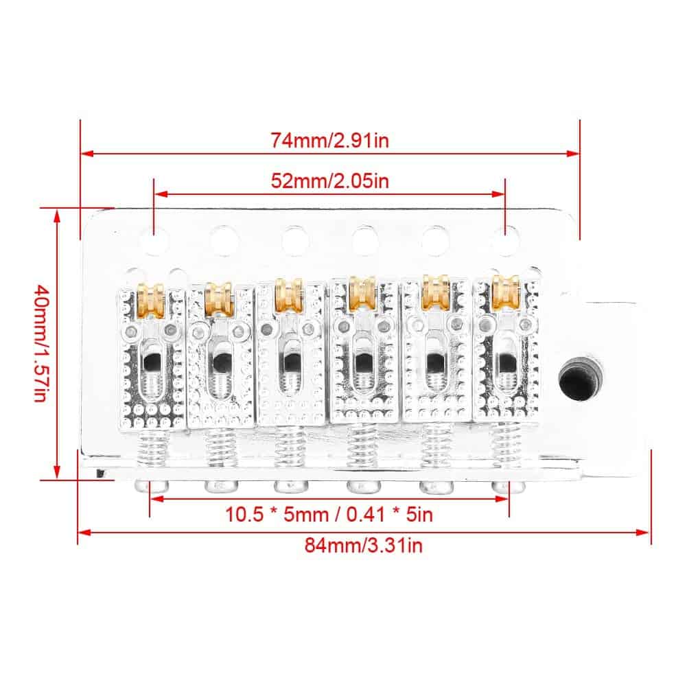 Tamaño del Puente: Aprox. 8.4 x 4.9 x 4cm (Total), 10.5mm (Espaciado de Cuerda / Espaciado de Orificio de Instalación de Resorte)