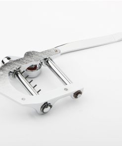Este tailpiece es de fundición cromada para adaptarse a guitarras de cuerpo plano equipadas con un puente tipo tune-o-matic.