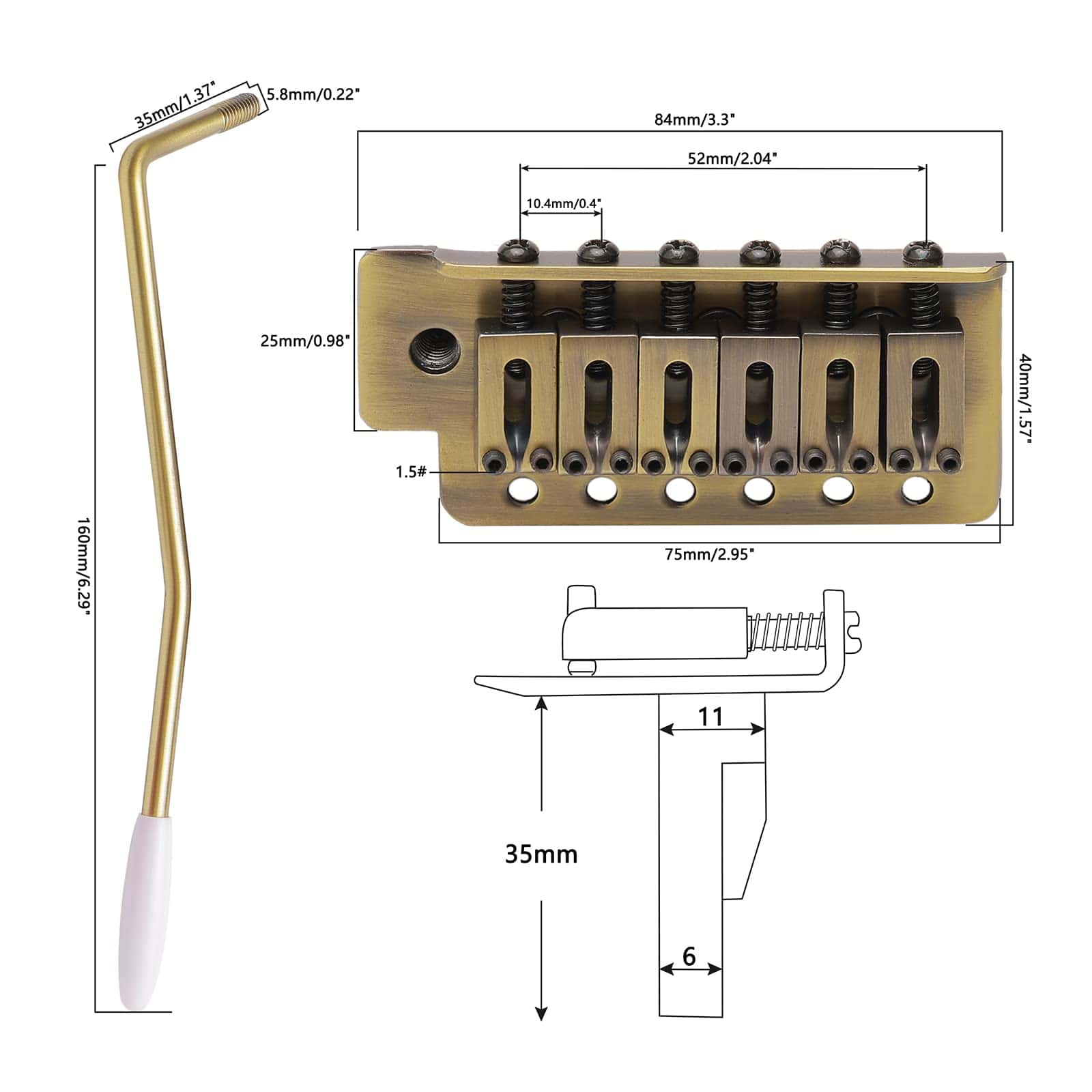 El set incluye un puente de trémolo con accesorios de montaje, fácil de instalar