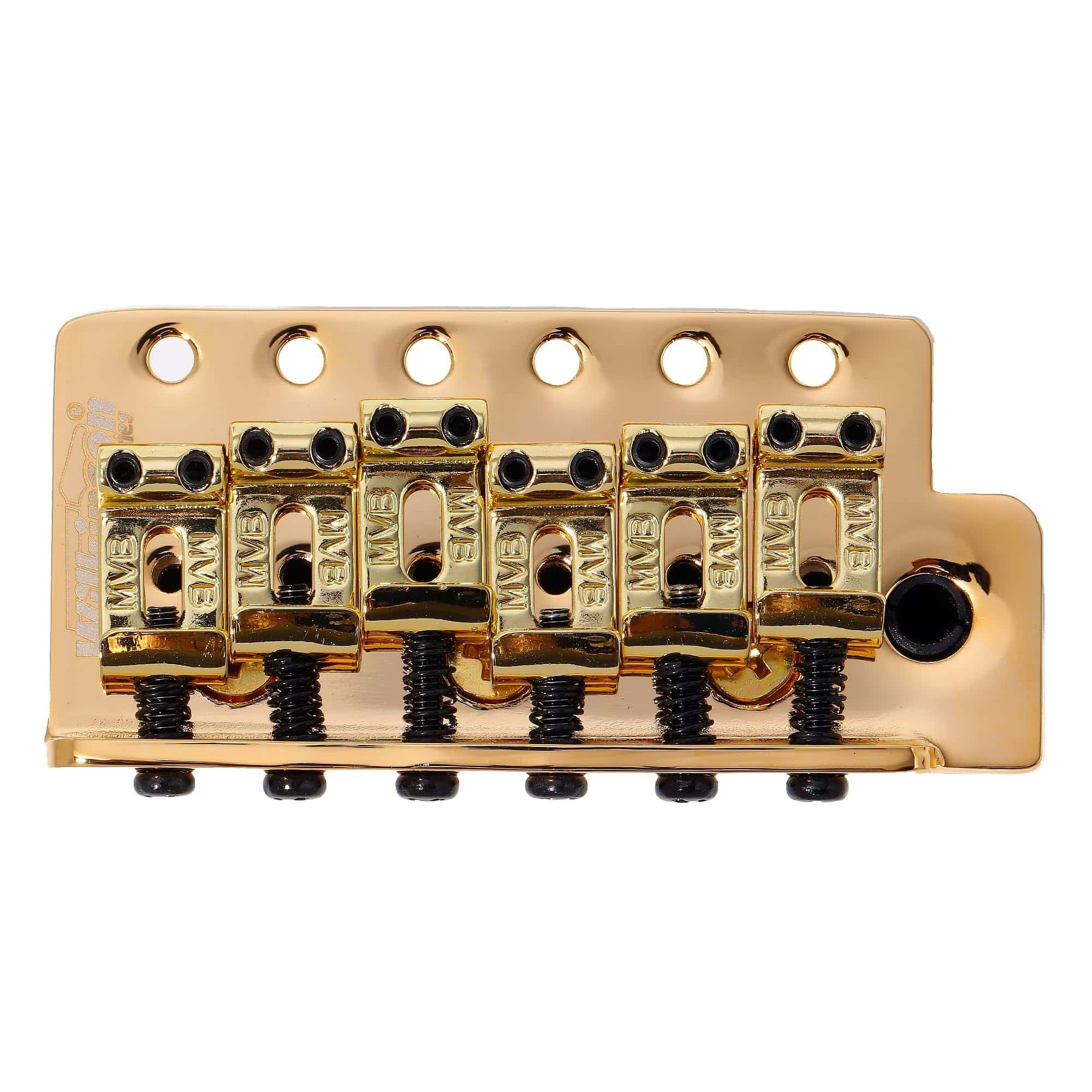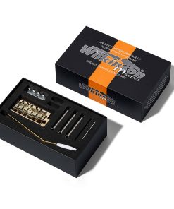 Puente de trémolo Wilkinson de 2-1/8 pulgadas para guitarra eléctrica Strat. Este puente se adapta a la mayoría de las guitarras Strat modernas o Stratocaster de México con estilo de puente de trémolo ST con 6 tornillos de montaje. También es compatible con muchas guitarras de estilo Strat MIJ (hechas en Japón). Cuenta con espaciado de cuerdas de 2-1/8 pulgadas (54 mm) y espaciado de 6 tornillos de montaje de 2-1/8 pulgadas (54 mm), lo que permite trabajar con espaciados de cuerdas de 52,5 mm y 54 mm. Este puente incluye un brazo de trémolo de inserción, sillines doblados de estilo vintage y una combinación de colores atractiva. Está fabricado con materiales de alta calidad como placa base de acero inoxidable cromado, sillines y bloque de sostenimiento de aleación de zinc fundido. El paquete incluye 1 juego de puente de trémolo y accesorios de montaje para una instalación sencilla.